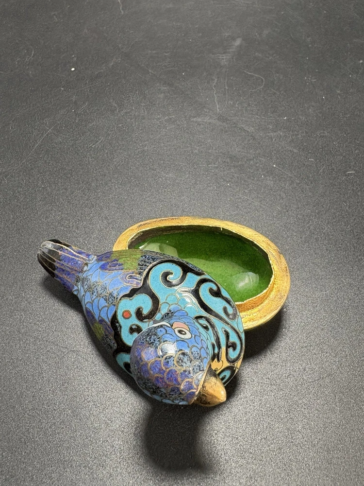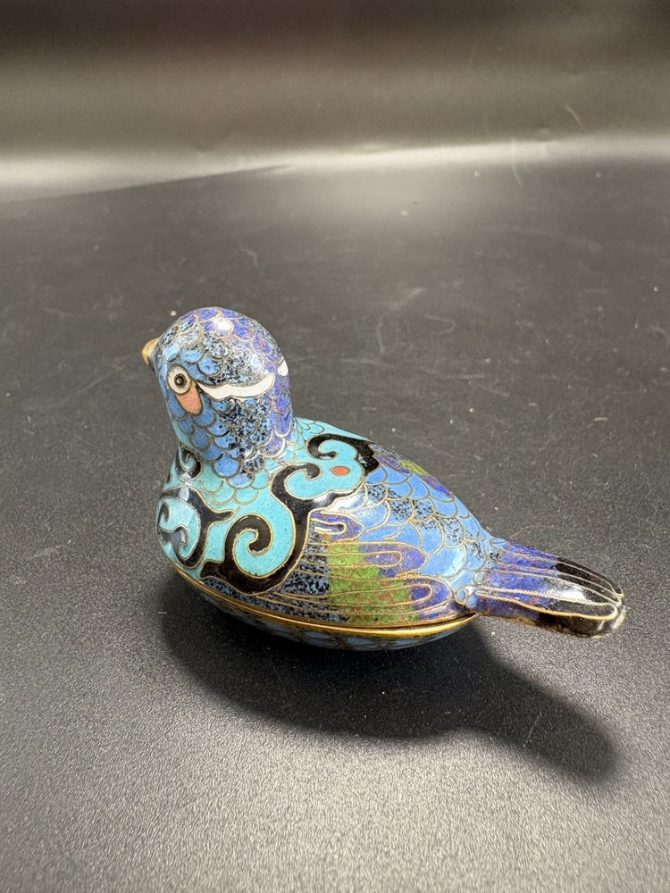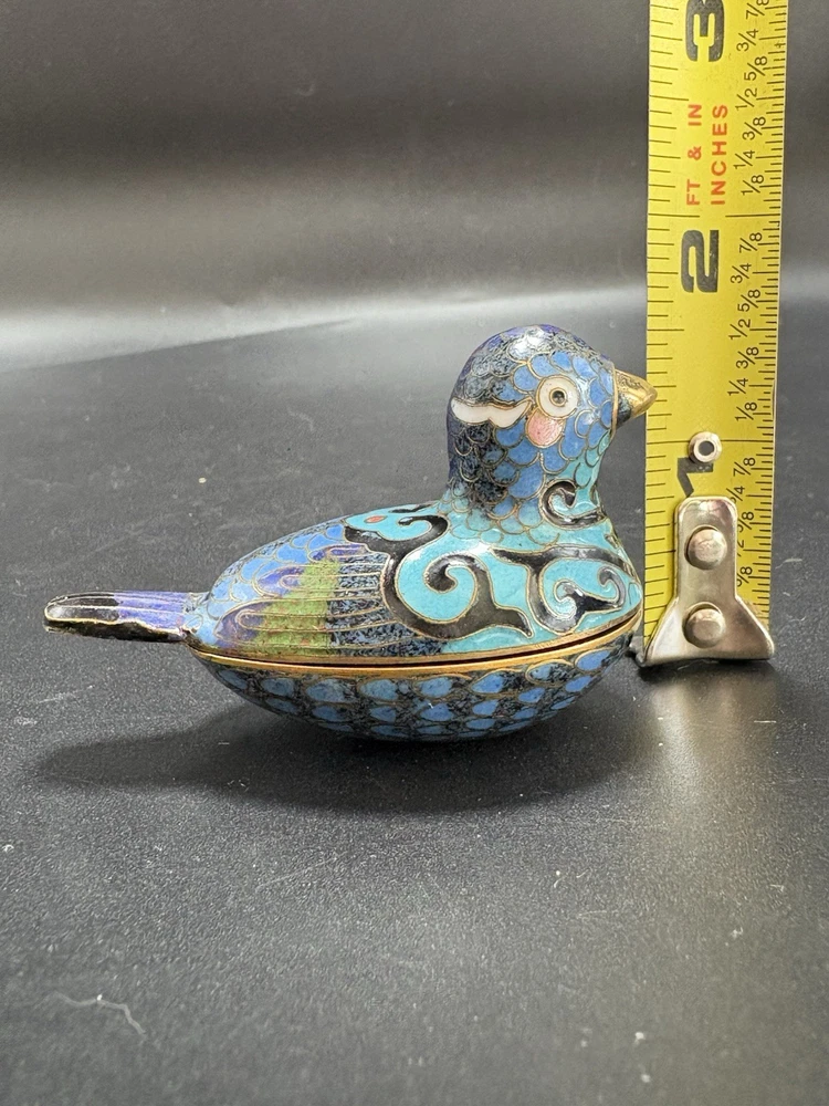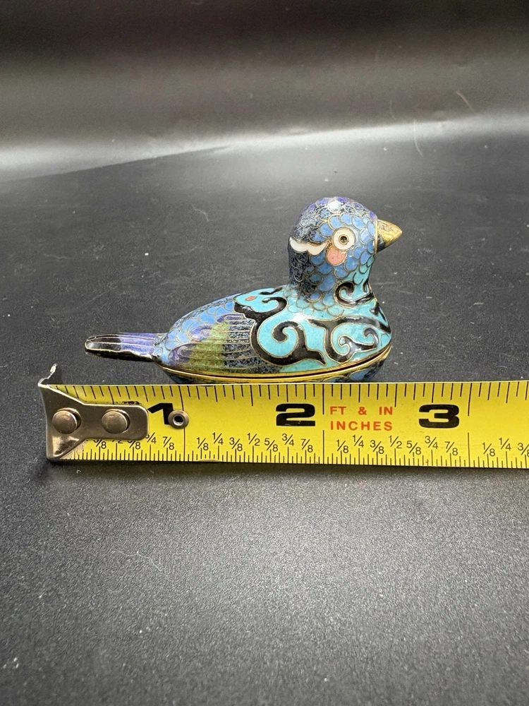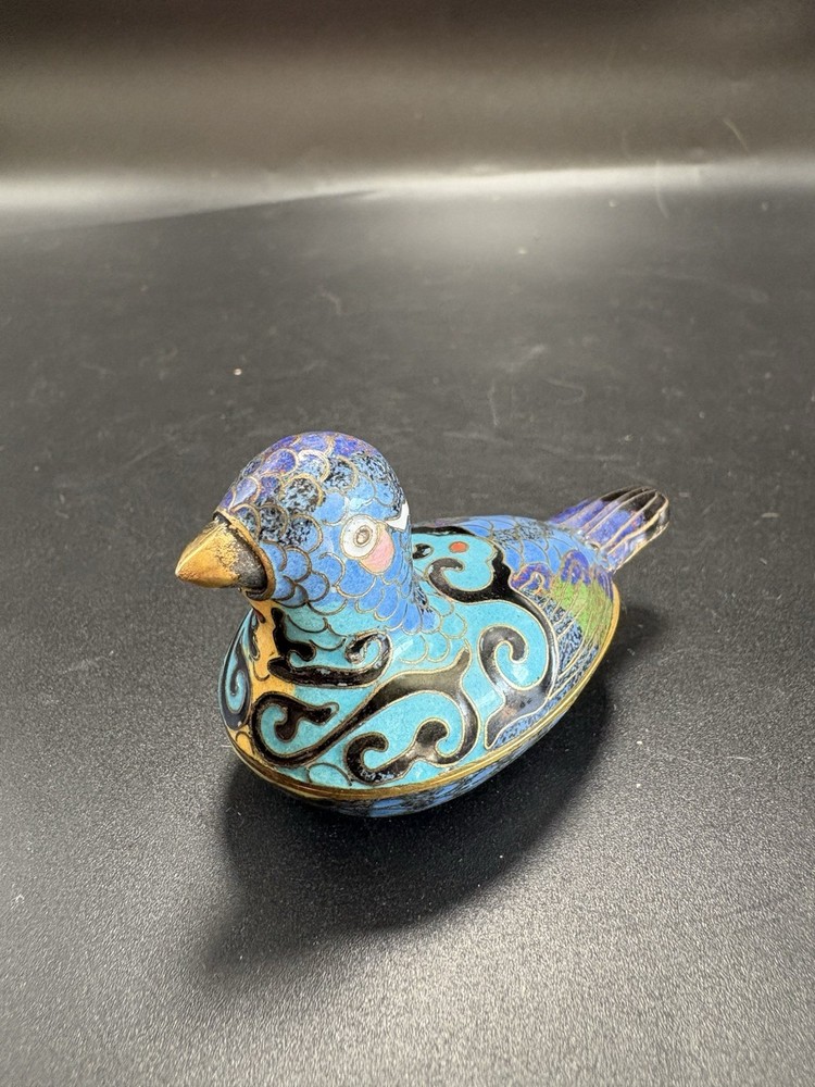 Vintage Chinese Cloisonné Enamel Miniature Bird Figurine 2”Tall 3ins L