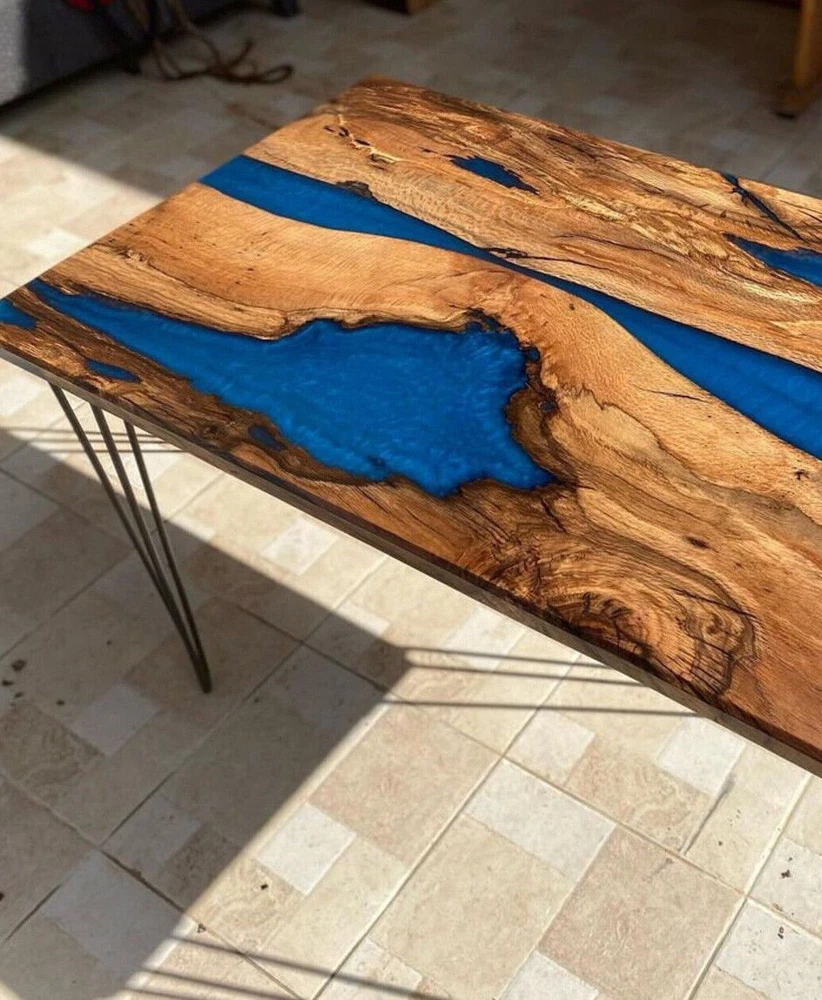 Blue Epoxy Resin Coffee Table , Epoxy Table , Sofa Center Wooden Table Home Deco
