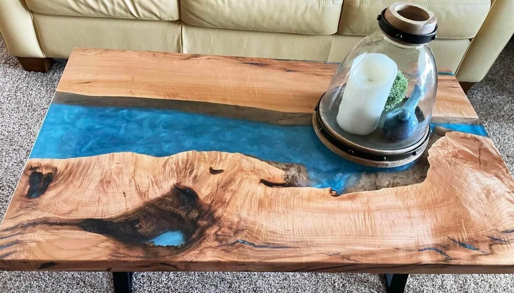 Blue Epoxy Resin Coffee Table Modern Acacia Center Hallway Table, Furniture Deco