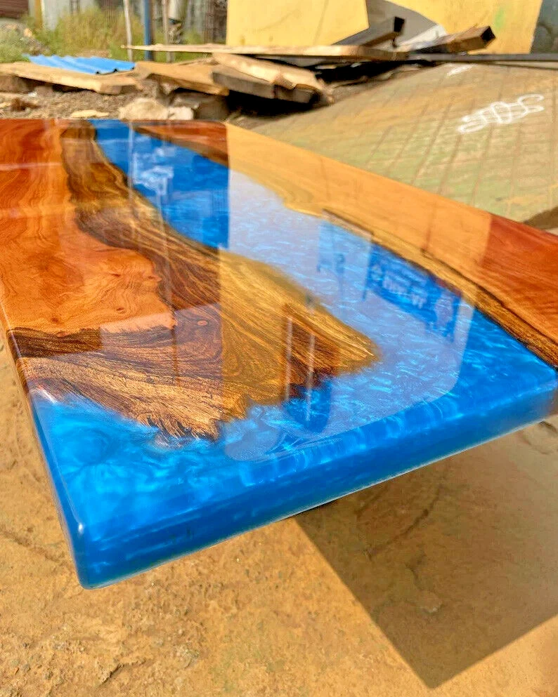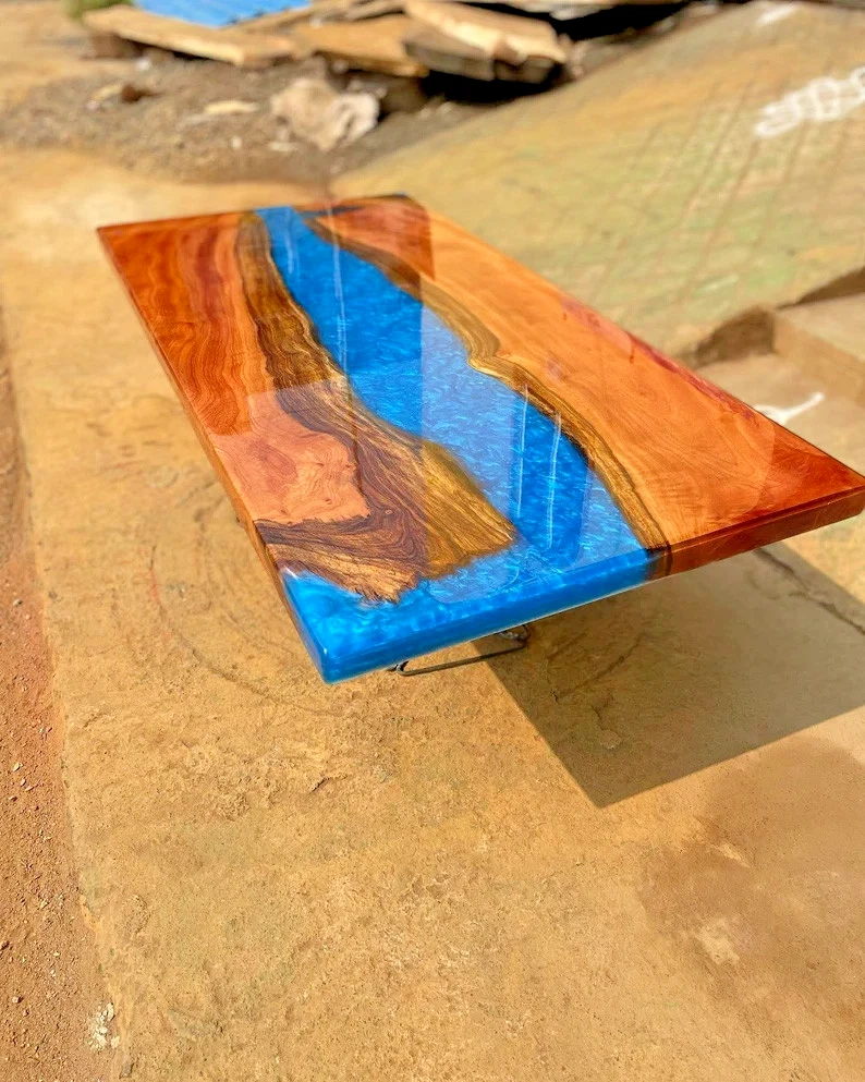Blue Epoxy Resin River Table Top, Epoxy Luxury Center Coffee Furniture Decors