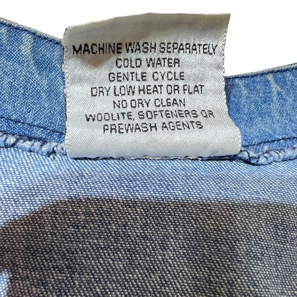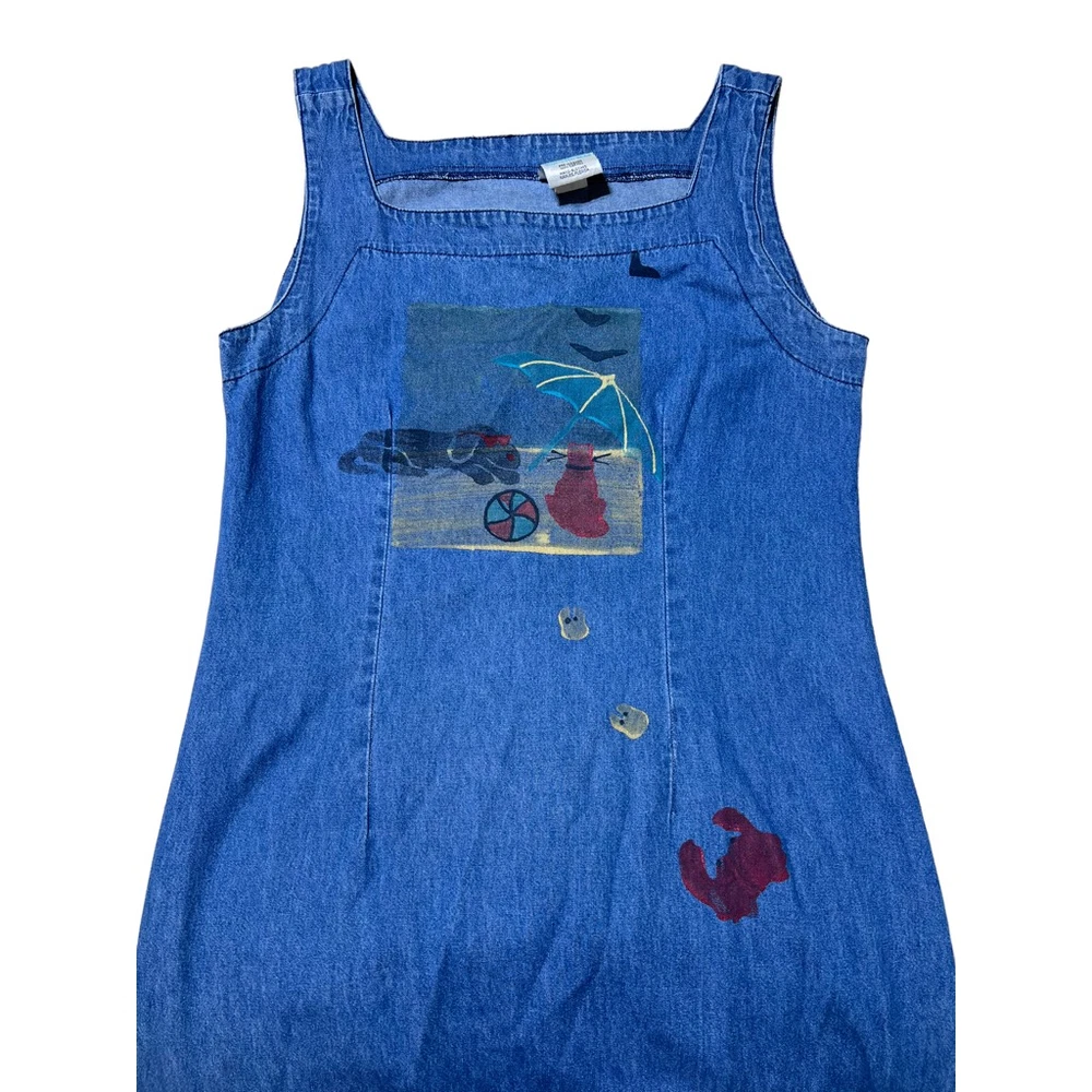 Blue Eyed Bear Denim Dress Set with Short Sleeve Top Womens Medium Chambray 90s Art to Wear Hand Painted Blocked in Naples Florida. Sheath style square neck dress with short sleeve button front top. In good pre-owned condition! No stains, tears or other signs of wear noted. Please see photos for more details and approximate measurements. Sold as pictured. Thanks for looking!