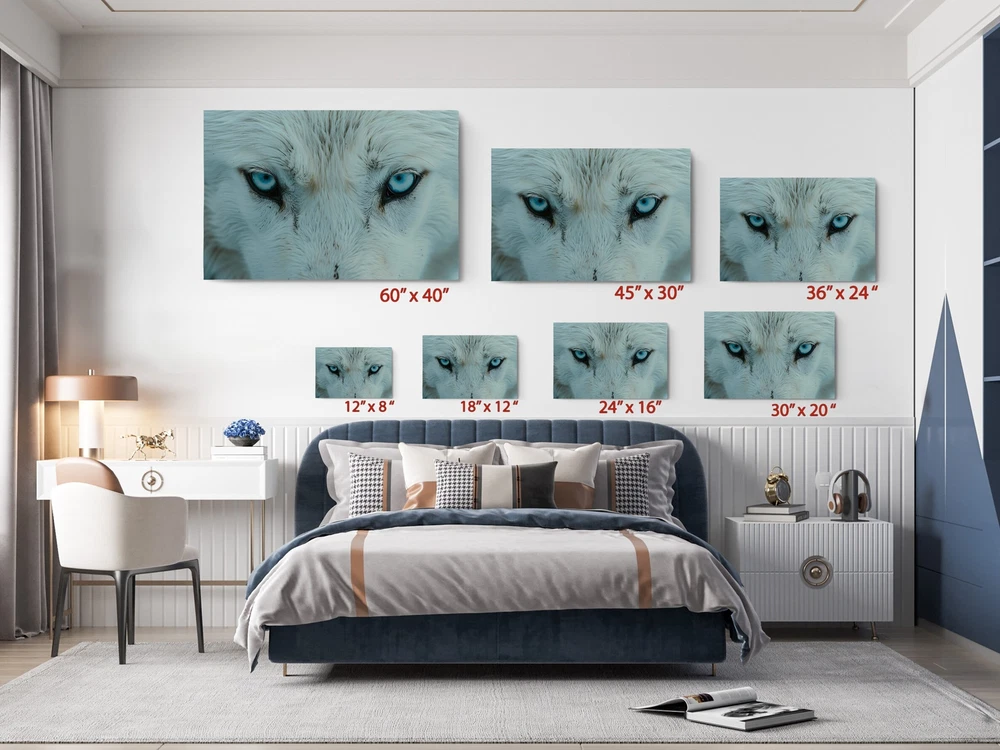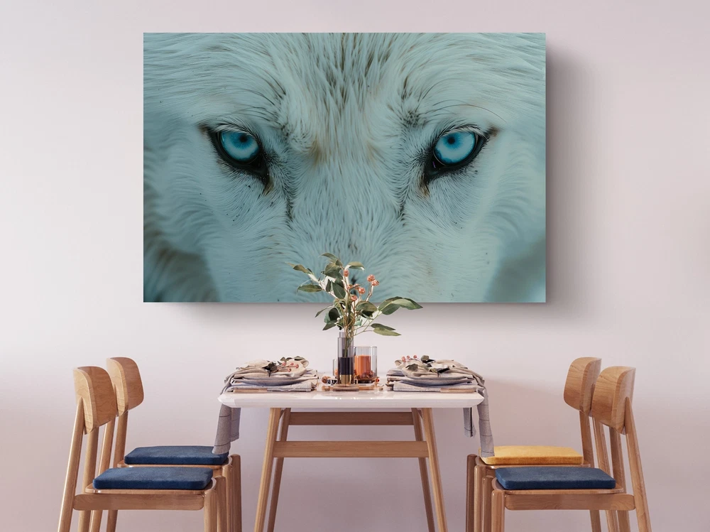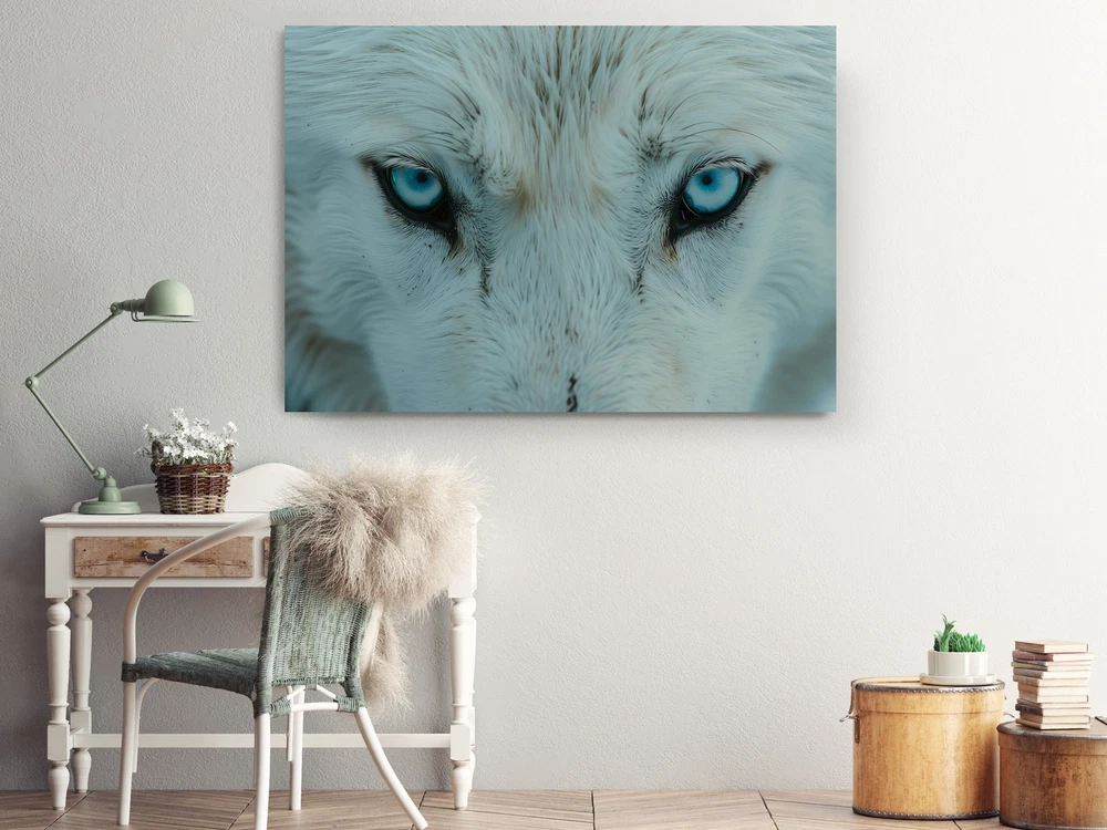 Blue Eyed Wolf on Canvas Print Animal Poster Stylish, Home Decor, Wall Hangings