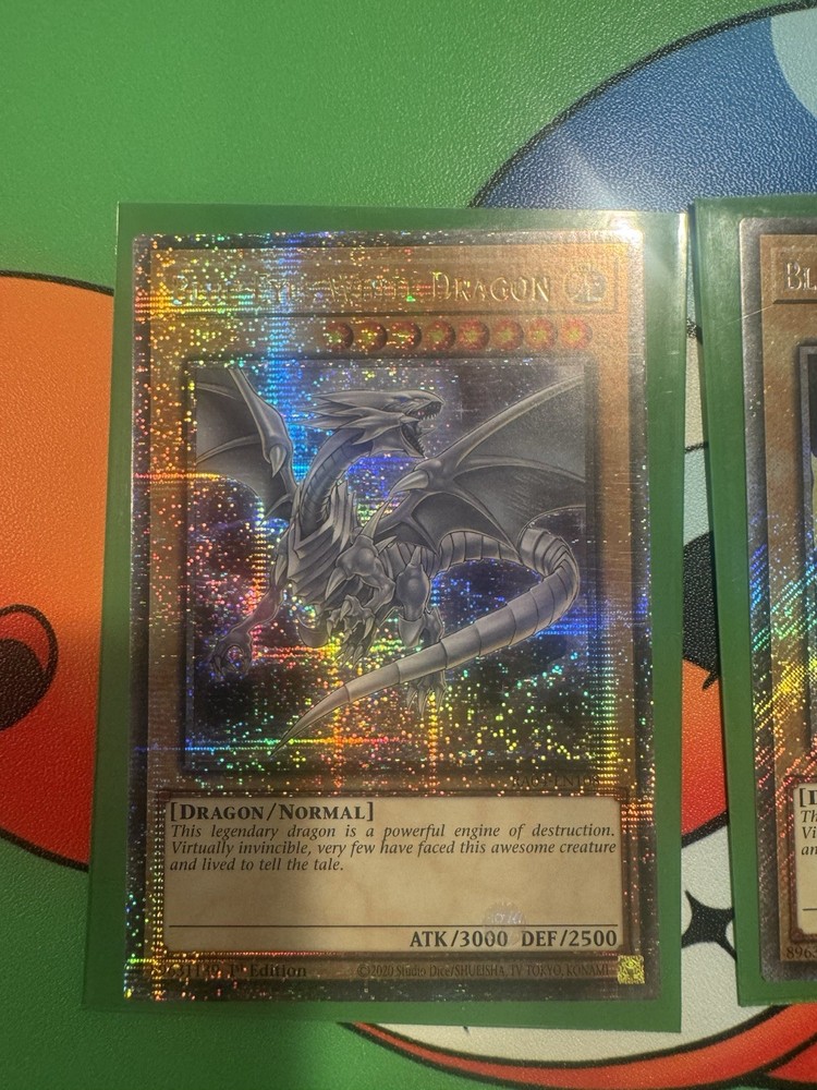 You buying cards in images, 2 blue white dragon . 1 quarter and 1 plat secret