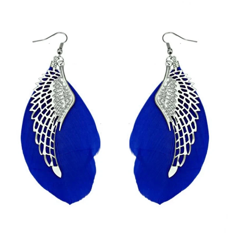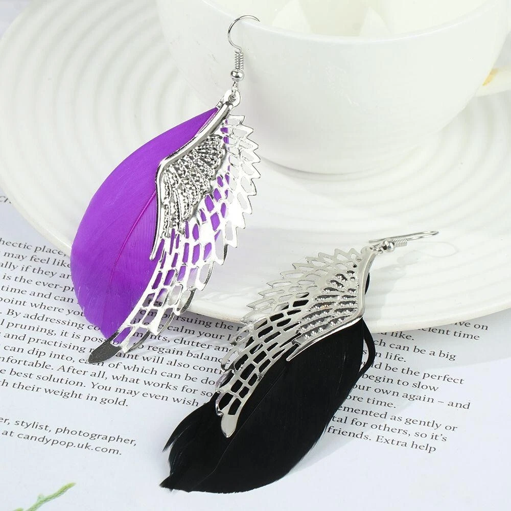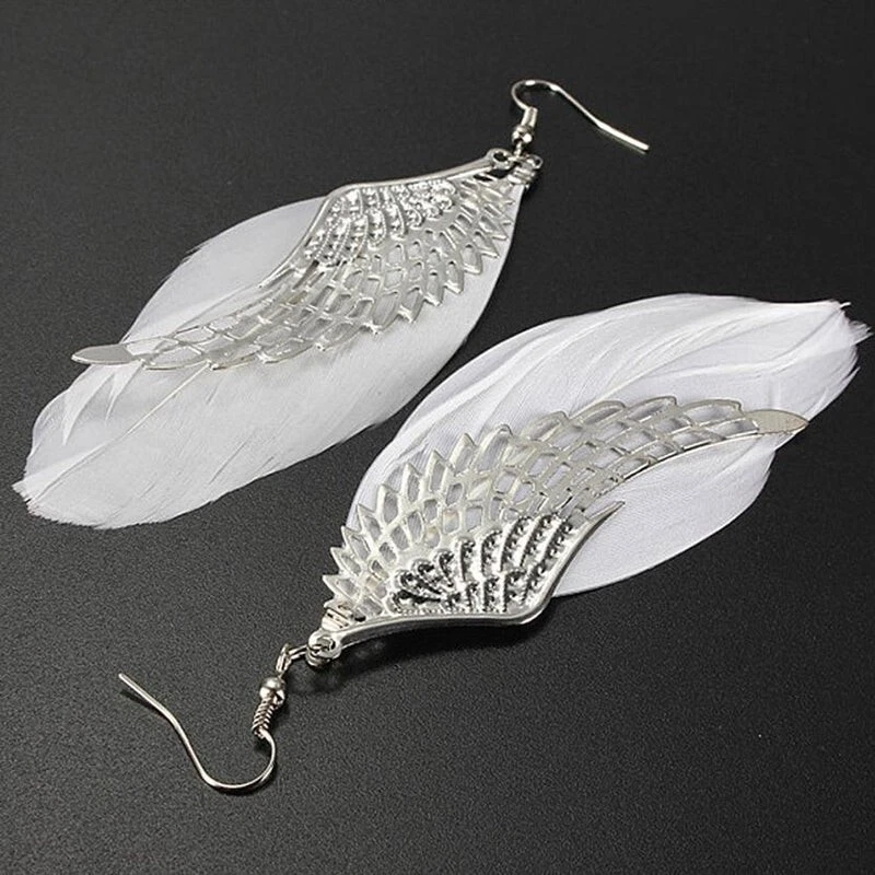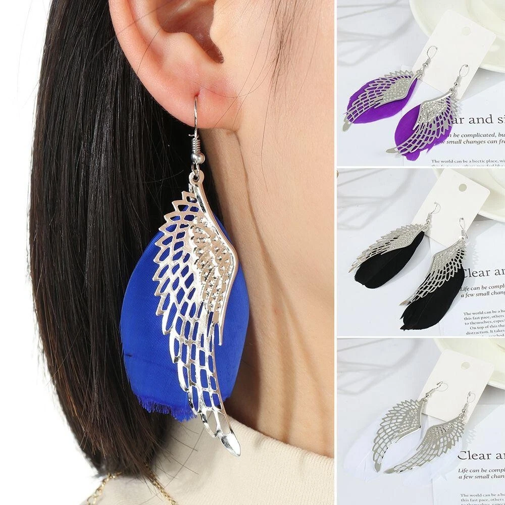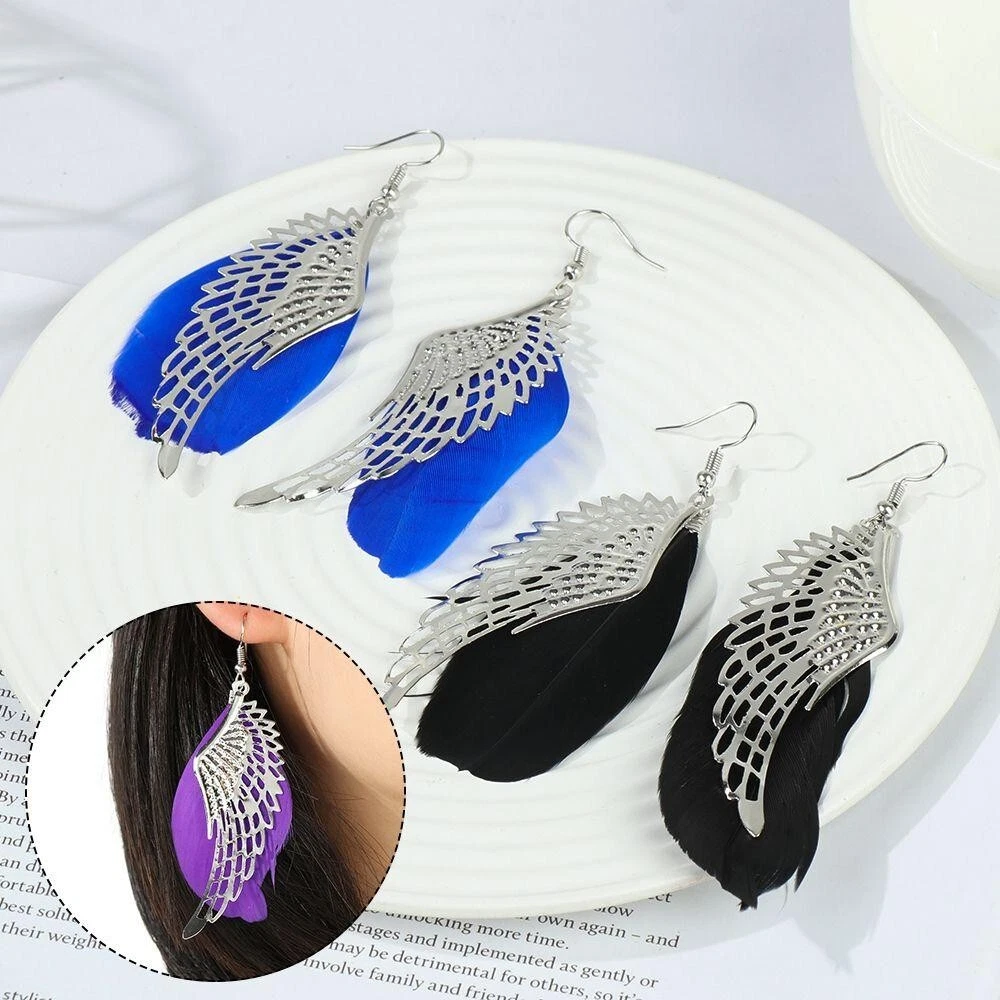 Boho White Feather Angel Wings Tassel Dream Catcher Earrings Hook Women. Feathered earrings are always in style, and now you can get a pair to match any outfit with the Angel Feather Earrings! These beautiful earrings are made from real goose feathers dyed in an assortment of beautiful, vibrant colours. Grab yours today! Feather Measures: 7.5cm in Lenght Material: Allow Silver Plated Makes for a wonderful gift Color:Black/Blue/ Dark Pink/ Maroon/Purple/White Hook Drop Circular Hoop Boho Tribal Vintage Retro Antique Damask Earring Hippie Hippy Shabby Chic Wing Vintage Bohemian Tibetan Silver Round Hollow Dangle Drop Earrings Women's Gift Wedding Jewelry Product Details Metal: Environmentally-friendly, low-allergen zinc alloy. Size: Approximately 90mm long by 35mm wide, though there is a lot of variation from pair to pair due to the fact that these earrings are made from natural features. I will do my best to make sure you get a pair that are a similar size, though. Finding: Standard 20g French Hook. Package includes: 1 Pair x Feathered Earrings
