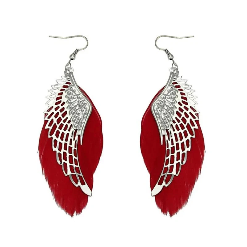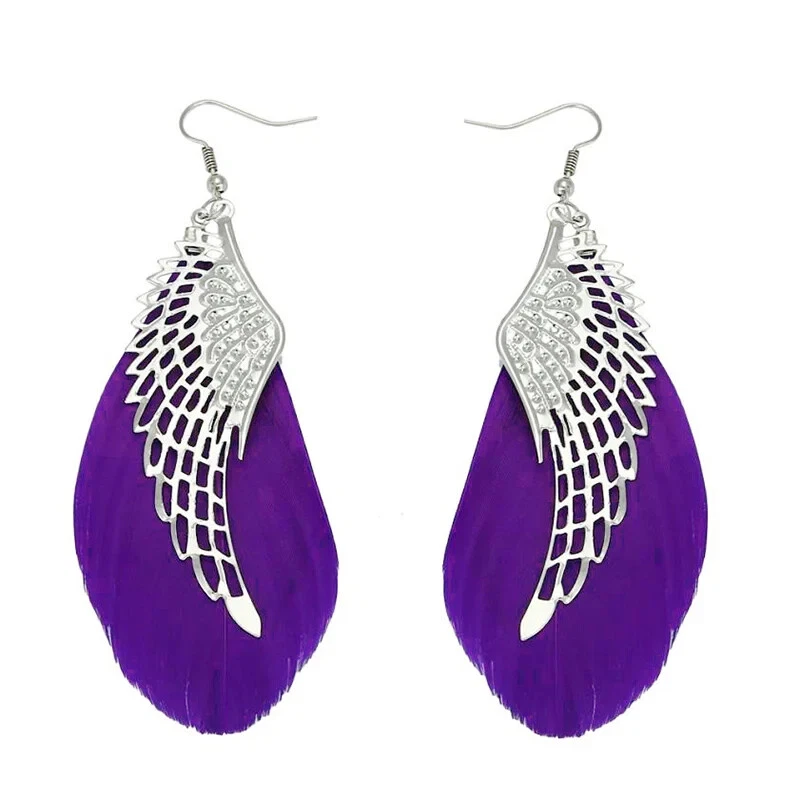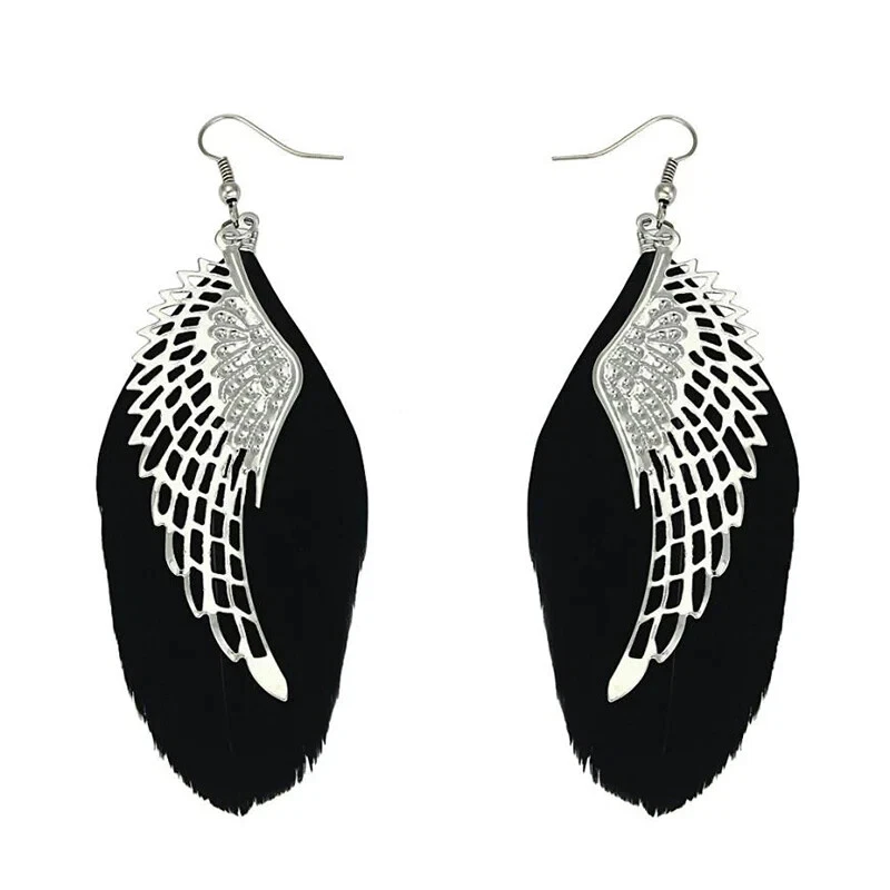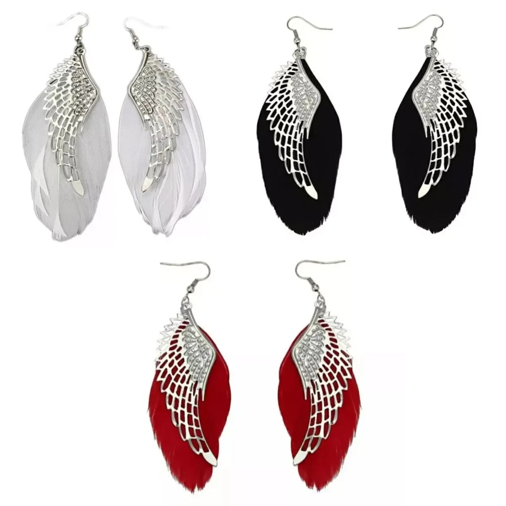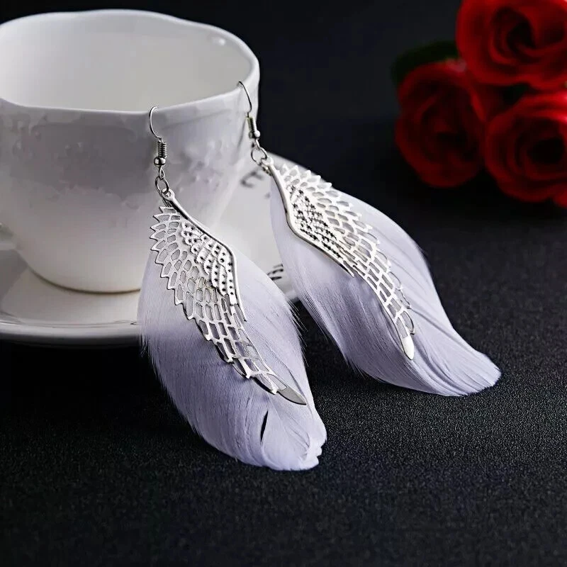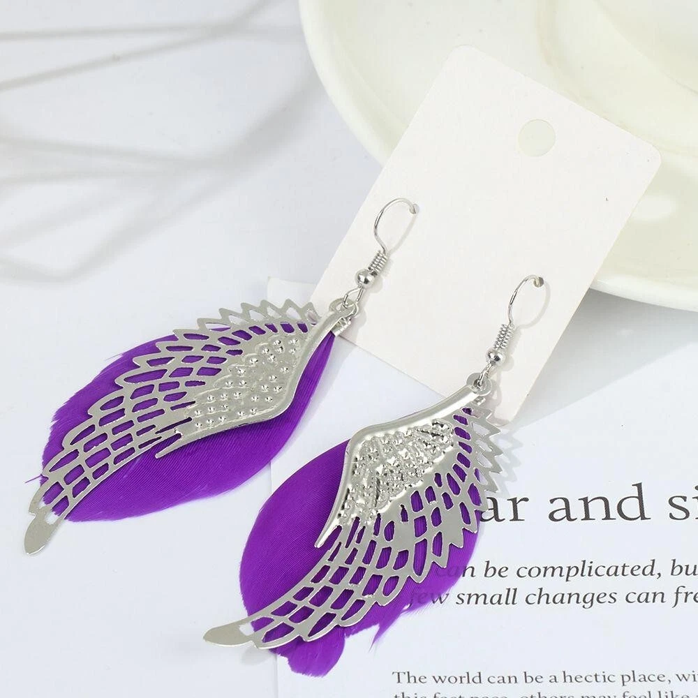 Boho White Feather Angel Wings Tassel Dream Catcher Earrings Hook Women. Feathered earrings are always in style, and now you can get a pair to match any outfit with the Angel Feather Earrings! These beautiful earrings are made from real goose feathers dyed in an assortment of beautiful, vibrant colours. Grab yours today! Feather Measures: 7.5cm in Lenght Material: Allow Silver Plated Makes for a wonderful gift Color:Black/Blue/ Dark Pink/ Maroon/Purple/White Hook Drop Circular Hoop Boho Tribal Vintage Retro Antique Damask Earring Hippie Hippy Shabby Chic Wing Vintage Bohemian Tibetan Silver Round Hollow Dangle Drop Earrings Women's Gift Wedding Jewelry Product Details Metal: Environmentally-friendly, low-allergen zinc alloy. Size: Approximately 90mm long by 35mm wide, though there is a lot of variation from pair to pair due to the fact that these earrings are made from natural features. I will do my best to make sure you get a pair that are a similar size, though. Finding: Standard 20g French Hook. Package includes: 1 Pair x Feathered Earrings