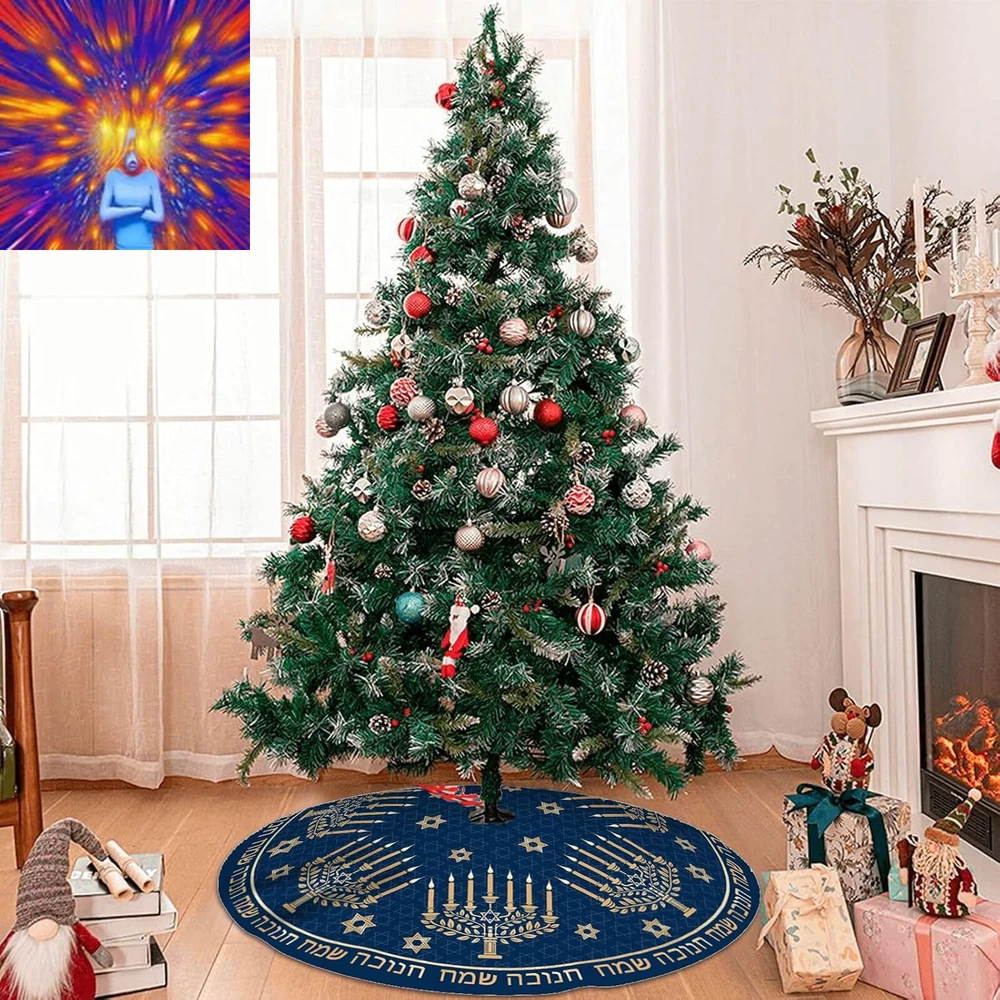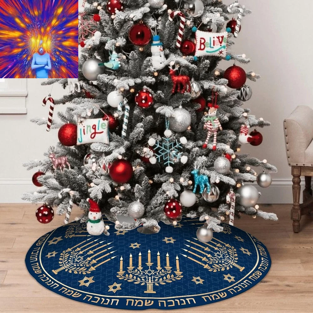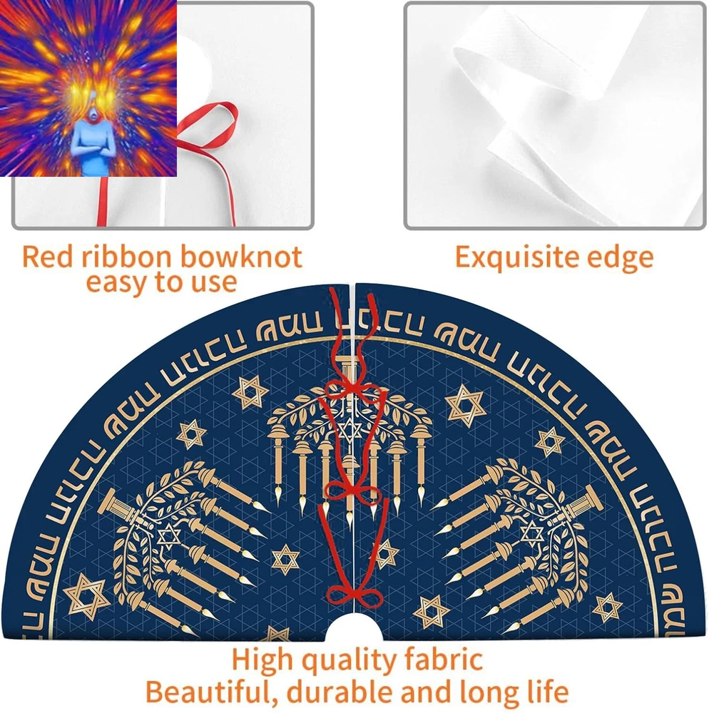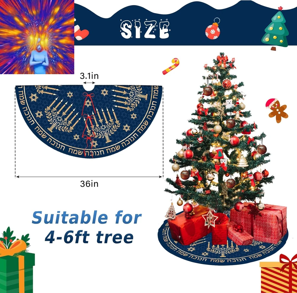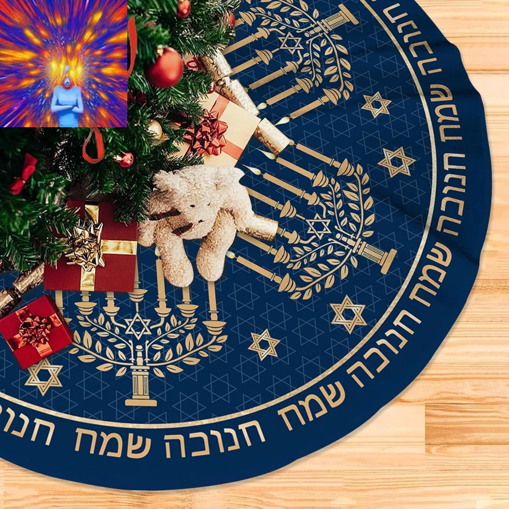 Blue Hanukkah Christmas Tree Skirt 36In, Happy Hanukkah Gold Candlestick Stars T