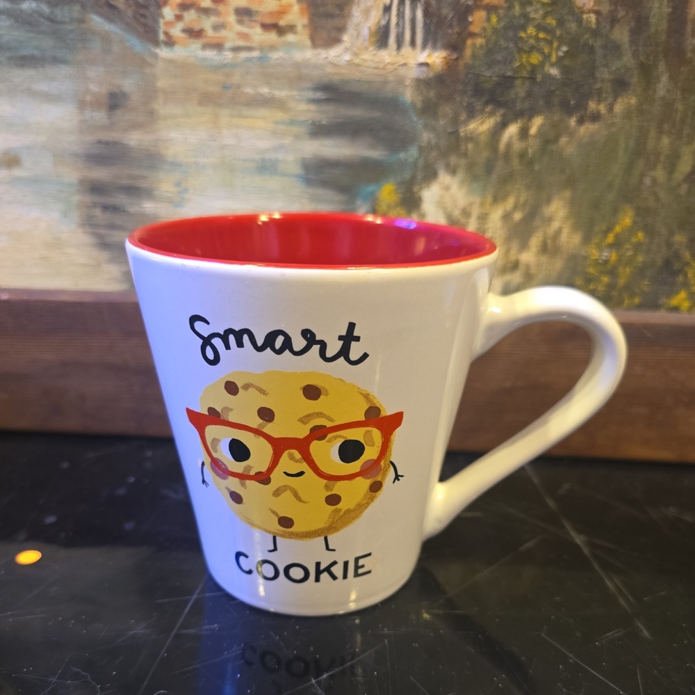 The Blue Harbor - Anne Was Here Smart Cookie Coffee Mug is a contemporary, novelty mug with a fun and curious theme. Made of ceramic, this round mug features a red and white color scheme with a pun-related design. With a capacity of 18 fl oz, this microwave-safe mug is perfect for coffee or tea, making it a unique and playful addition to your kitchen or dining area.