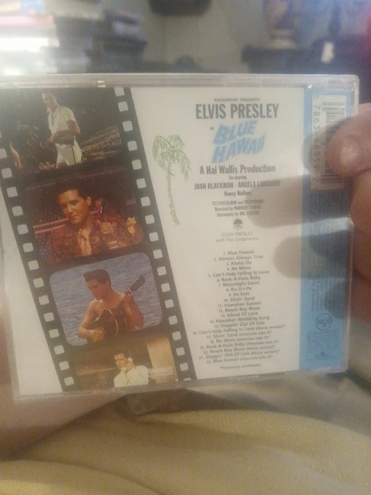 ELVIS PRESLEY BLUE HAWAII A Hal Wallis Production Co-starring JOAN BLACKMAN - ANGELA LANSBURY Nancy Walters TECHNICOLOUR and PANOVISION Directed by NORMAN TAUROG Sereenplay by BAL KANTER ALLY ELVIS PRESLEY with The Jordanaires 1. Blue Hawaii 2. Almost Always True 3. Aloha Oe 4. No More 5. Can't Help Falling In Love 6. Rock-A-Hula Baby 7. Moonlight Swim B. Ku-U-I-Po 9. Ito Eats 10. Slicin' Sand 11. Hawallan Sunset 12. Beach Boy Blues 13. Island Of Love 14. Hawalian Wedding Song 15. Steppin' Out Of Line 16. Can't Help Falling In Love (Movie version)* 17. Slicin' Sand (Alternate take 4) • 18. No More (Alternate take 7)* 19. Rock-A-Hula Baby (Alternate take 1)* 20. Beach Boy Blues (Movie version)* 21. Steppin' Out Of Line (Movie version)* 22. Blue Hawaii (Alternate take 3)*