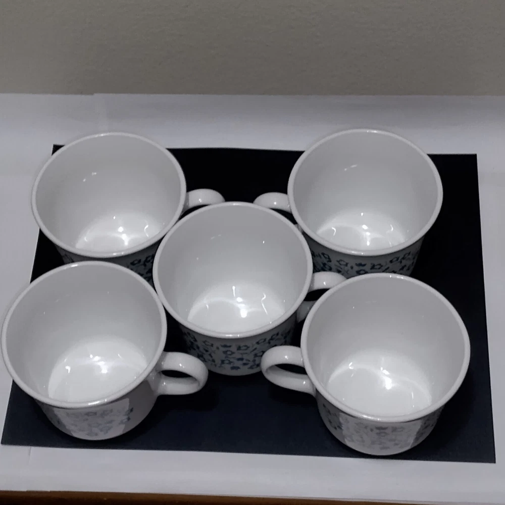 Blue Heather CORELLE by Corning Floral Vtg Set of 5 Coffee Mugs Tea Cups
