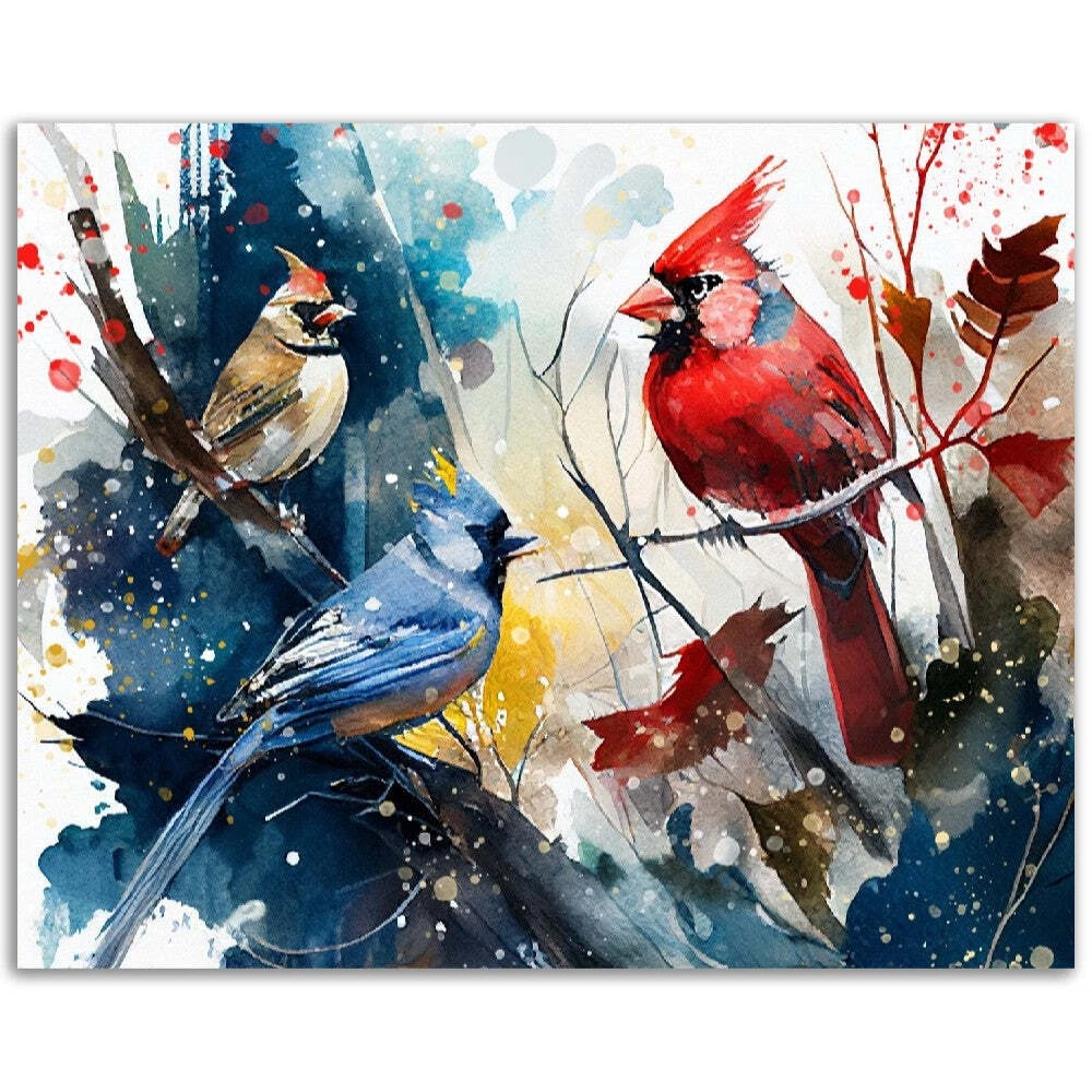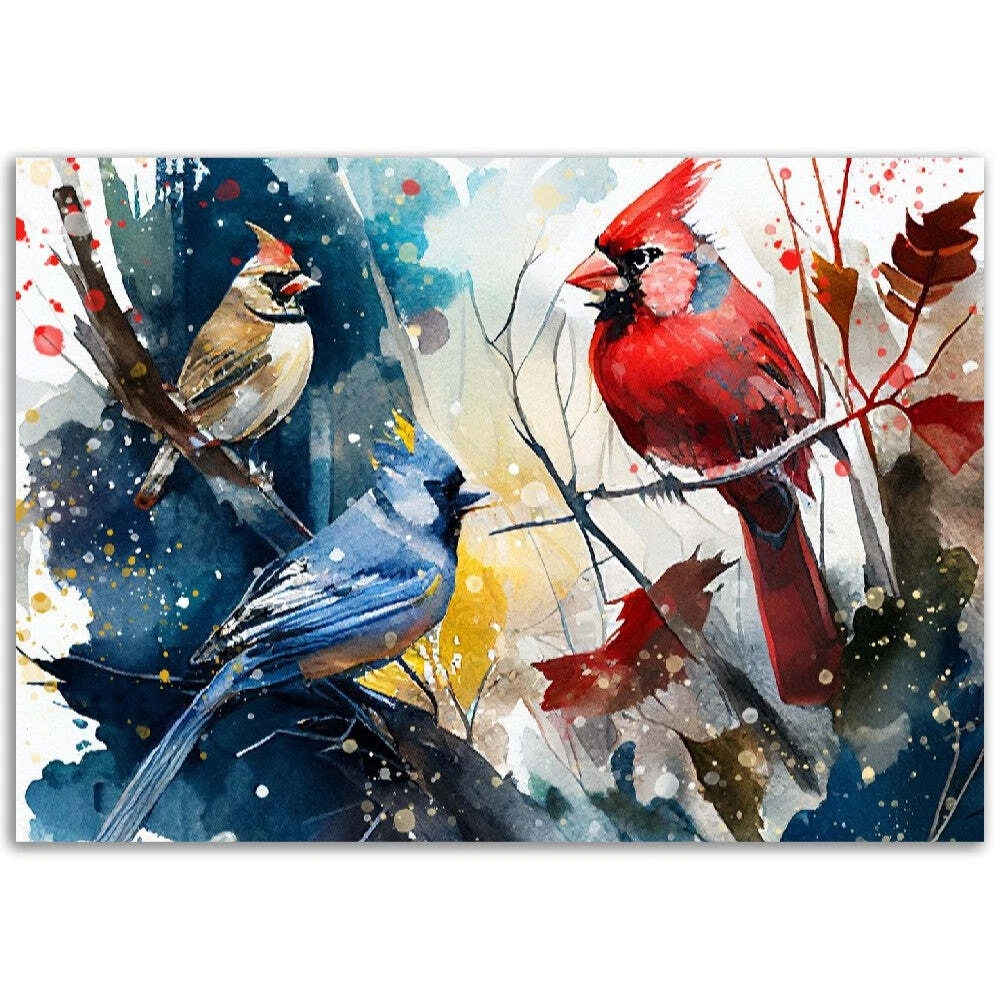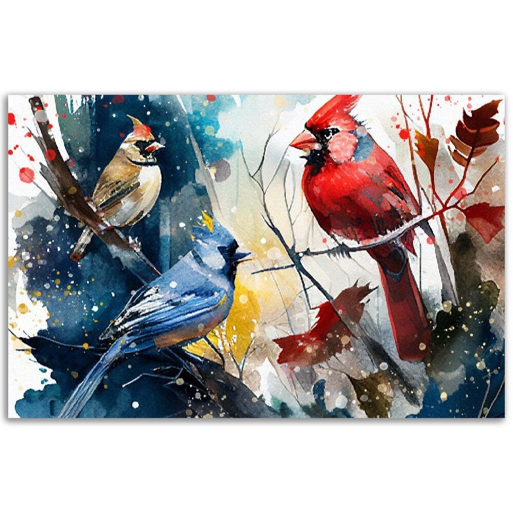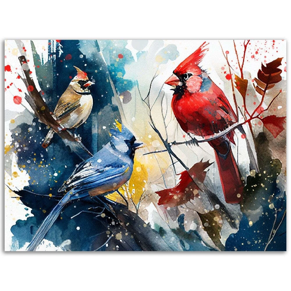 Blue Jay & Cardinal Watercolor Painting Bird Wildlife Art Print Poster