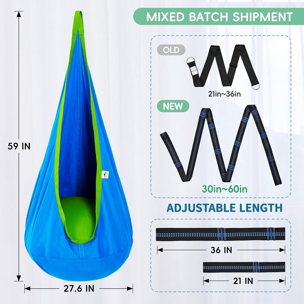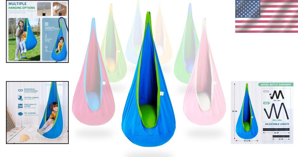 Blue Kids Pod Swing Seat - Cotton Sensory Hammock for Indoor & Outdoor Fun ‹ › ‹ › ‹ › ‹ › ‹ › ‹ › ‹ › ‹ › ‹ › Blue Kids Pod Swing Seat Experience the perfect blend of fun and comfort with our Blue Kids Pod Swing Seat – a cotton sensory hammock designed for both indoor and outdoor enjoyment! Features: Fun and Sensory: Creates a cozy, safe space for children, providing soothing sensations that foster sensory regulation and relaxation. Comfortable: Soft, warm, and breathable cotton-canvas material makes it the ideal choice for reading, TV-watching, or listening to music. Well Made: Designed with reinforced nylon edgings and double-stitched for safety; equipped with a soft PVC air cushion to prevent mold. Universal Use: Suitable for both indoor and outdoor hanging – from ceilings to trees; enhances any child's room, making it a perfect reading nook. Easy to Install: Includes all necessary hardware; features an adjustable nylon belt and a choice of screws for concrete and wooden installations. Benefits: Creates a soothing environment that promotes relaxation and sensory regulation. Versatile for both indoor comfort and outdoor adventure. Durable construction that ensures safety and supports up to 100 pounds. Quick installation process, allowing children to enjoy their swing in no time. Why Choose the Blue Kids Pod Swing Seat? Imagine a space where your child can retreat to feel safe, secure, and relaxed. Our Blue Kids Pod Swing Seat provides this sanctuary while also contributing to your child's sensory development. With its durable and comfortable design, this swing will quickly become a favorite pastime for reading, cuddling, or simply enjoying a moment of tranquility. Don't miss out on the opportunity to enhance your child's playtime experience. Invest in mental wellness and comfort today with our Blue Kids Pod Swing Seat! Order now and give your child the gift of fun and relaxation. Shipping Free & Fast Shipping - We offer free shipping to most of the USA with a normal delivery time of 3-7 days. However, due to the current situation, additional delivery time (up to 3 weeks) may be required for some items. Alternative Carriers - We may use alternative carriers (e.g. USPS, FedEx, UPS, etc.) to ensure your package arrives safely and on time. Due to the use of multiple carriers, we are unable to provide a tracking number automatically. Handling Time - Orders are processed and shipped within 1-2 business days of receiving cleared payment. Shipping Restrictions - Shipping to Alaska, Hawaii, Puerto Rico, Guam, and other US territories may incur shipping charges or delivery restrictions. Please contact us before ordering, or your order can be refunded/cancelled. State Restrictions - There may be restrictions based on your state of purchase. For example, certain items may not be shipped to California due to state regulations. Contact for Tracking Updates - If you require tracking updates or have any concerns about the delivery of your order, please feel free to contact us, and we will be happy to assist you. Return 30-Day Hassle-Free Returns - We want you to be completely satisfied with your purchase. If you are not, you can return the item within 30 days of receiving it for a full refund or exchange. Easy Return Process - To start a return, simply contact us and we will provide you with a prepaid return shipping label and detailed instructions. Restocking Fee - There are no restocking fees for returns. However, the buyer is responsible for return shipping costs if the return is not due to a seller's error. Refund Processing Time - Refunds will be processed within 5 business days of receiving the returned item in its condition. Payment We accept all major credit cards, PayPal, and Apple Pay for your convenience. Your payment information is secure and encrypted to ensure a safe and seamless transaction. Please complete your payment within 3 days of purchase to avoid any delays in shipping. Feedback Your feedback is extremely important to us. We strive to provide the best products and customer service possible. If you are satisfied with your purchase, please take a moment to leave us a positive review. If you have any concerns or issues with your order, please contact us before leaving negative feedback. We are committed to resolving any problems and ensuring your satisfaction. Contact Us If you have any questions or concerns, please feel free to out to our customer support team. You can contact us through the eBay messaging system. We are available Monday to Friday, 9:00 am to 5:00 pm EST, and we will do our best to respond to your inquiry within 24 hours. Buy it now and enjoy a pleasant shopping experience! Unit Quantity: 3 pounds Features: Portable,Sensory,Comfortable,Easy to Install,Adjustable Nylon Belt Material: Canvas,Cotton,Nylon Type: Kids Pod Swing Color: Blue Seating Capacity: 1 Weight Capacity: 100 lb Item Height: 10.63 Inches Item Weight: 3 lb