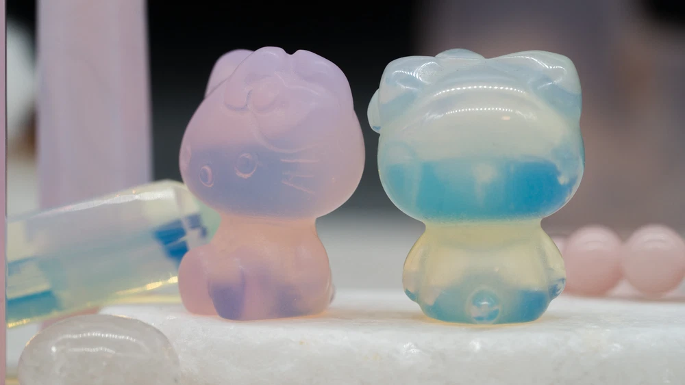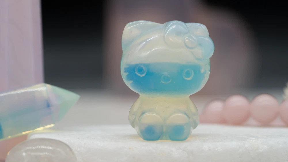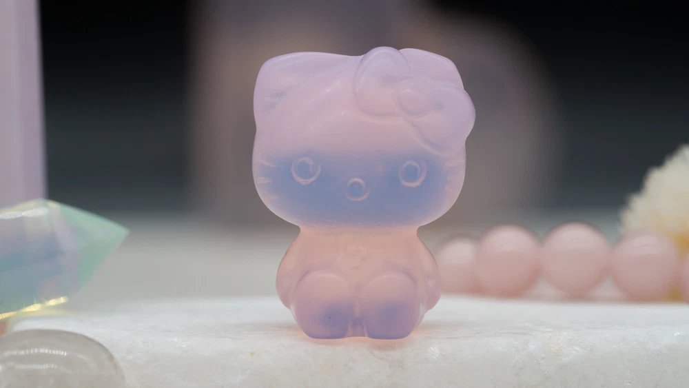 These cute Hello Kitty character fanart carvings are made from opal and pink opalite crystal materials. You will receive one (1) intuitively chosen crystal carving in the color chosen from the drop-down menu, measuring approximately 1.2" high. Example photo has been provided for approximate size reference. Gems and crystals are great for altars, grids, terrariums, pocket stones, gifts, home decorating, jewelry, collecting and more! They are also wonderful additions to meditation, spiritual, and chakra work. Opalite is a subtle yet highly energetic stone and improves communication on all levels, especially in a spiritual aspect. *This listing uses professional photography to provide samples of our collection of products. Each stone is natural, unique and beautiful so please expect slight variations in color, texture, and size. You will receive a product similar to that of the picture, but not the exact product. **Please note that healing crystals are not a replacement for traditional medical treatment and are not meant to replace consulting with a medical professional and do not guarantee any medical cure for any condition. ***This is not an officially licensed Sanrio product, and only features the likeness of Hello Kitty on a fanart basis.