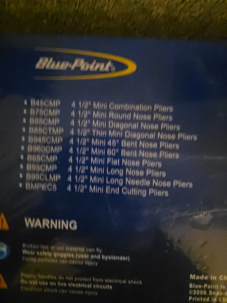 The Blue Point 10 pc Mini Pliers & Cutters Set BMPL1000, sold by Snap-On, is a set of mini pliers manufactured by Blue Point. This set includes a variety of mini pliers and cutters, making it a versatile addition to any garage or workshop. With the reliability and quality associated with the Snap-On brand, this set is designed to meet the needs of professionals and DIY enthusiasts alike.