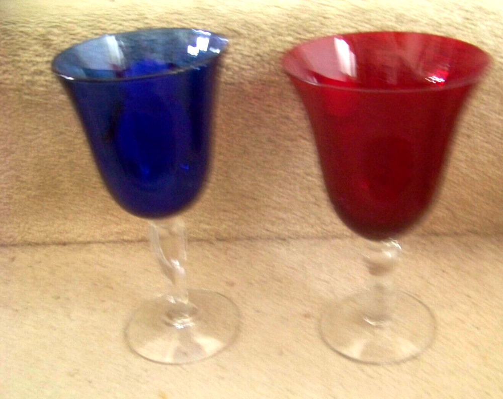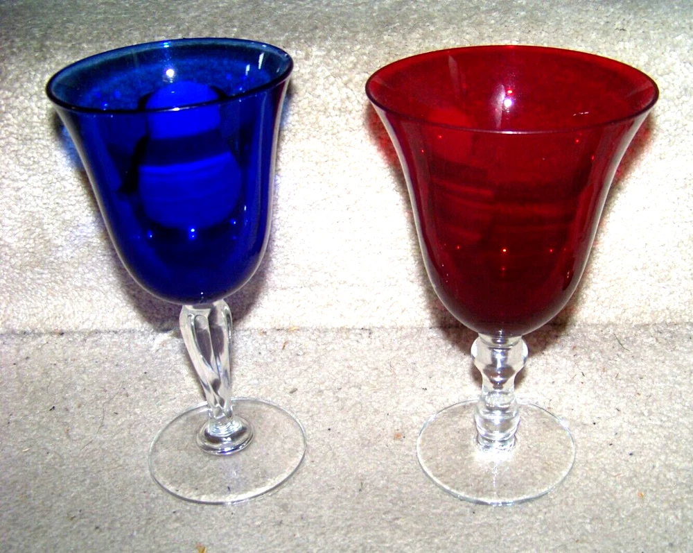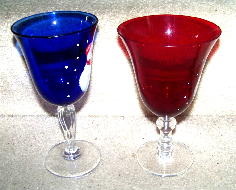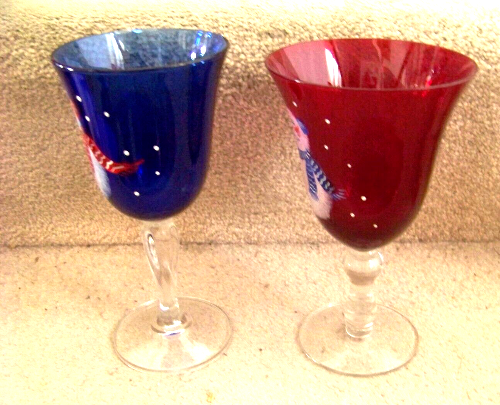 Blue & Red Snowman Stemware Glasses - 7.6" & 7.3" Tall - Free Shipping
