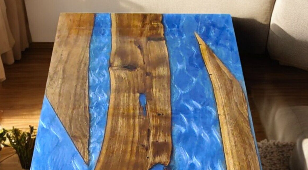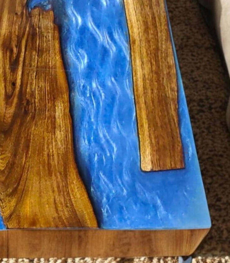 1. This stunning blue resin epoxy table is a showstopper! The 36"x24" size is perfect for small dining spaces or conference rooms, blending modern elegance with natural wood charm. While each piece is unique due to slight variations in epoxy tones and wood grain, that only adds to its one-of-a-kind appeal. The craftsmanship shines through in every detail, making it a conversation-starting centerpiece. Love how the blue resin creates a mesmerizing river-like effect!