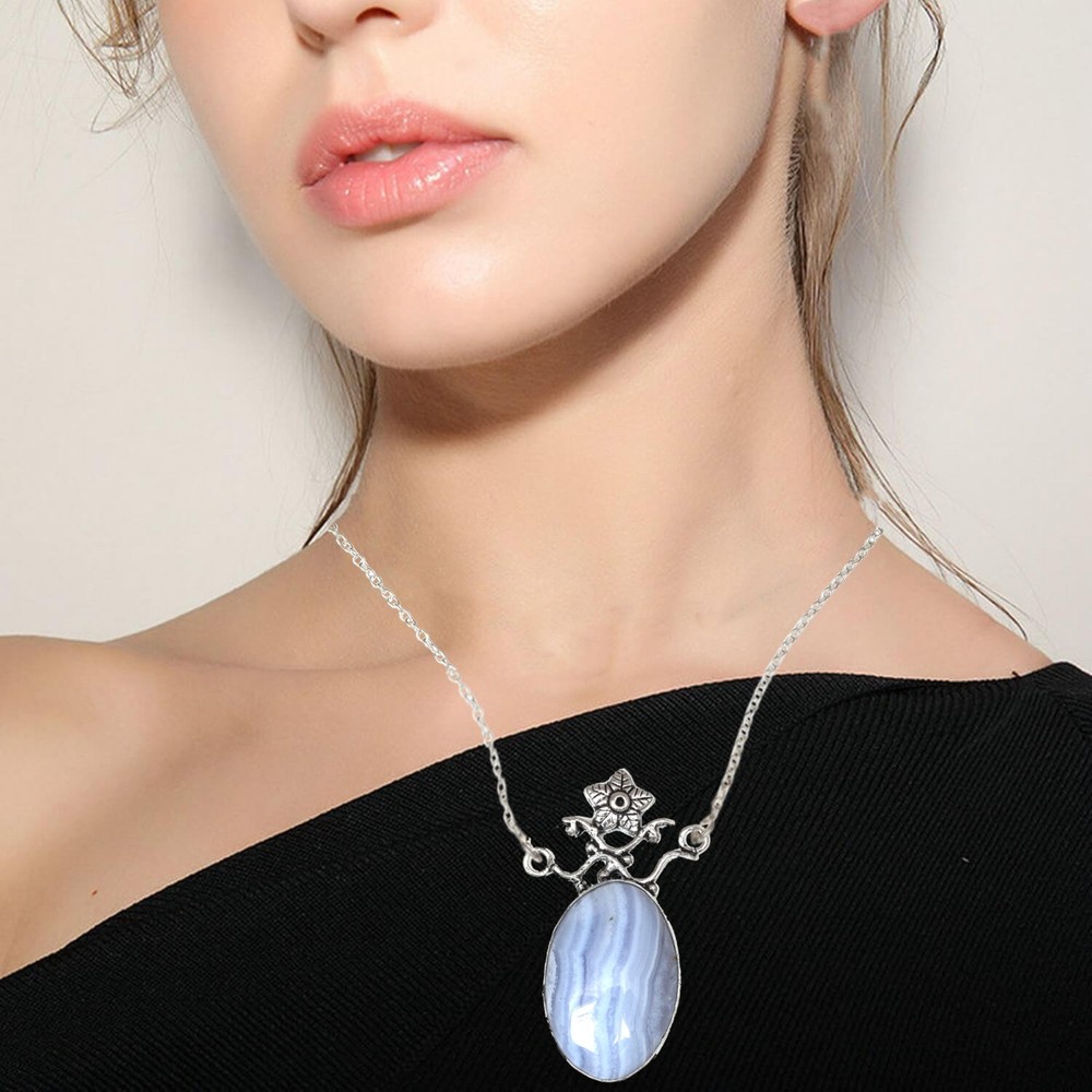 This stunning lace agate pendant is a true masterpiece! The deep blue hues and intricate silver detailing make it a standout piece. The craftsmanship is exceptional, and the natural gemstone adds a luxurious touch. Lightweight yet durable, it’s perfect for everyday wear or special occasions. The attention to detail and high-quality materials make it worth every penny. A must-have for jewelry lovers!