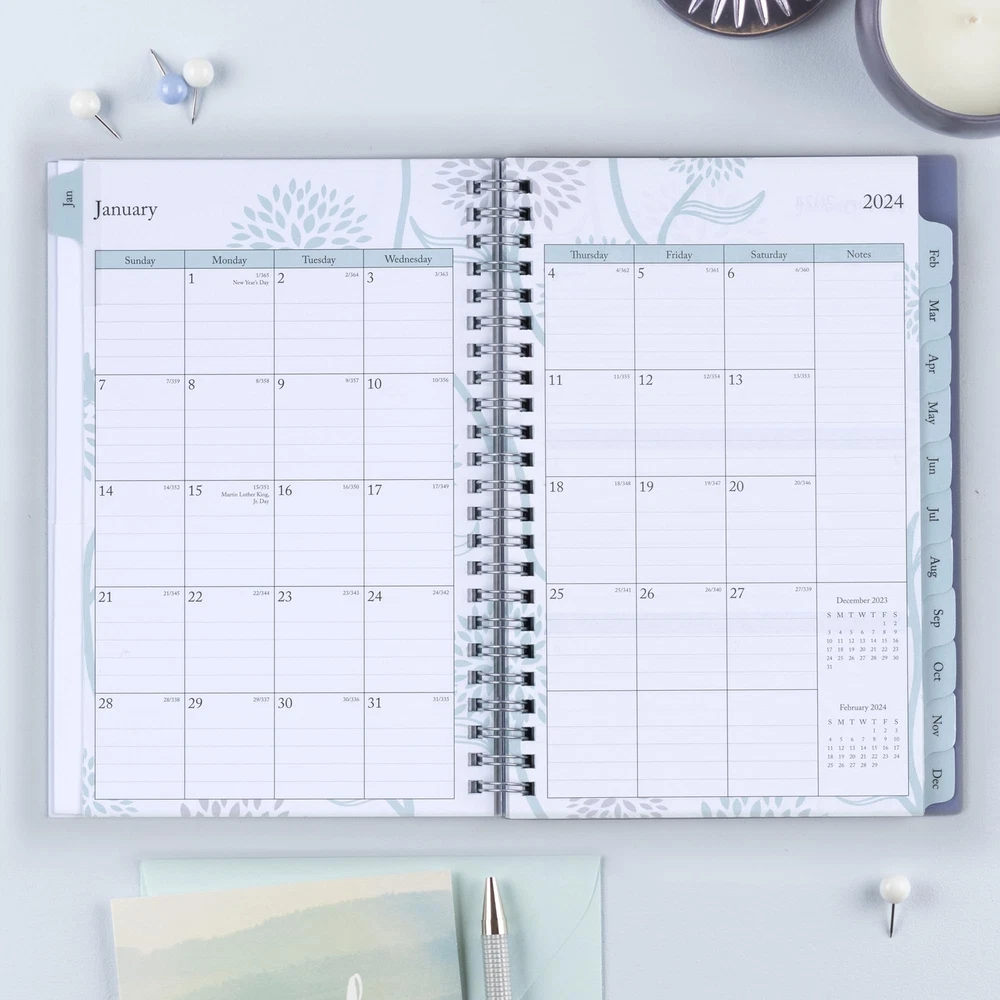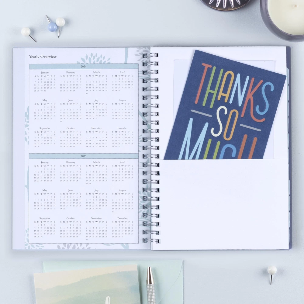 Blue Sky 2024 Weekly and Monthly Planner, January - December, 5" x 8", Frosted Cover, Wirebound, Rue Du Flore (101603-24) Plan your year in style with the beautiful florals and soothing colors of the 2024 calendar year Rue Du Flore collection. This stylish weekly and monthly planner will keep you organized everywhere you go. Simple page designs add a touch of sophistication and offer plenty of room for all of your important information. Designed with practicality and ease of use in mind, this floral agenda's monthly calendar tabs allow for easy access to each month’s plans while weekly views offer ample writing space for detailing each day. High quality white paper provides clean writing space for jotting down your appointments, to-dos and reminders. Use this dated planner to keep track of your appointments, and to write down notes and ideas in one place. Durable coated tabbed dividers are long lasting and make accessing information a breeze. Premium quality covers and twin-wire binding provide reliable durability for daily use. Stay on track throughout the year with this portable 5 x 8 planner dated January 2024 - December 2024. Mix and match with other Rue Du Flore Collection planning products from Blue Sky to organize your daily life. January 2024 - December 2024 pretty day planner with 12 months of monthly and weekly pages for easy year-round planning; 6 additional monthly pages (July 2023 - December 2023) are included Monthly view pages contain previous and next month reference calendars for long-term planning, and a notes section for important projects; Major holidays listed, elapsed and remaining days noted Weekly view pages offer ample lined writing space for more detailed planning, allowing you to keep track of your appointments, reminders, ideas and to-do lists every day of the week Yearly calendar planner includes a poly storage pocket, a convenient list of holidays, reference calendars, contacts pages and extra notes pages to accommodate your scheduling needs Printed on high quality white paper for clean writing space, with premium quality covers in soothing colors and durable, coated tabs that withstand constant use throughout the year Shipping from the USA All of our products are shipped from the USA, ensuring quick delivery to your destination. Payment We offer the following payment methods: PayPal, credit card, bank transfer, and eBay's secure payment system. Free Shipping & Free Returns Shipping within the USA is FREE. Additionally, any return is absolutely free for you. Risk-Free Purchase You have the option to return an item within 30 days without any justification. We cover the return shipping costs! Fast Shipping We ship immediately upon receipt of payment. Generally, the package is delivered within 2-3 days in the USA. If it takes longer, we will contact you. Quality and Costs Made in Europe, USA, China No customs fees or additional charges Total satisfaction guarantee Invoice with declared VAT available upon request in .pdf format Feedback Your feedback is very important to us. After you pay for your purchase, you will automatically receive positive feedback from us.