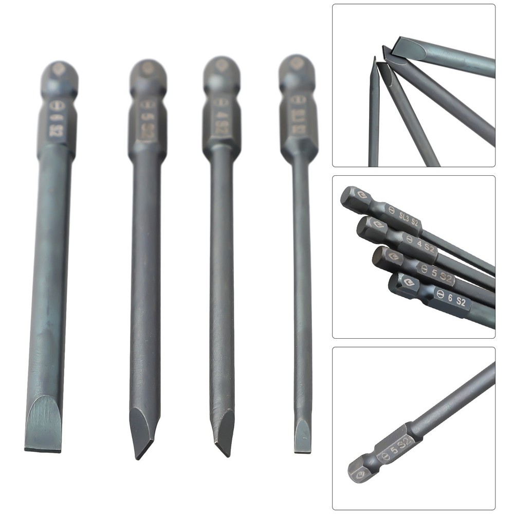 Beschreibung Features: *Those Slotted Tip Screwdriver Bits are made of alloy steel which is a commonly used material in hardware. *Magnetic bits can be firmly fixed on screwdrivers. *The is bluish, and it is resistant to rust. *4 sizes to choose from at an affordable can meet your requirements. *Fitting for electric screwdrivers, hand screwdrivers, electric drills, air drills and so forth. Specifications: *Product name: Slotted Screwdriver Bit *Materials: Alloy steel *Color: Blue *Type: Slotted Tip *Length: 100mm/3.93'' (Approx.) *Size: (Optional ) SL3.0, SL4.0, SL5.0, SL6.0 *Shank Size: 6.35mm (1/4'') Hex *Suitable for: DIYers, Home decoration, furniture installation, carpentry work *Quantity:1pc Package Included: 1*Slotted Screwdriver Bit Note: 1.Transition: 1cm=10mm=0.39inch. 2. The real color of the item may be slightly different from the pictures shown on website caused by many factors such as brightness of your monitor and light brightness. 3. Please allow slight manual measurement deviation for the data. POLICES Shipping Payment WARRANTY We only ship to confirmed ebay Order addresses. Please comfirm that your Order address is in line with your shipping address. Please kindly note that the c ombined shipping is not provided because the shipping fee is calculated by weight. Also, the each additional item means exactly the the same color and size. It takes about 7 -15 working days to US; about 10-30 working days to other countries. Transit time may be a little delayed because of the bad weather and customs inspection . If you do not receive your item within 30 working days since payment finished, please contact us immediately for further assistance. Payment must be completed within 5 days. If you have any problems about payment, please contact us via ebay message. We strive for 100% customer satisfaction! Positive Feedback is very important to us. If you have any questions, p lease feel free to contact us via "Ask seller a question" . We will reply your email within 24 working hours.