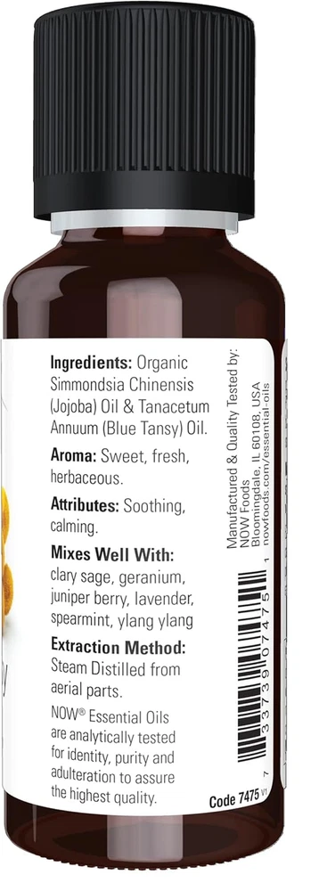 Organic Simmondsia Chinensis (Jojoba) Oil & Tanacetum Annuum (Blue Tansy) Oil AROMA: Sweet, fresh, herbaceous ATTRIBUTES: Soothing, calming Mixes Well With: clary sage, geranium, juniper berry, lavender, spearmint, ylang ylang MULTI-USE/BENEFITS - Aromatherapy is an and time-honored tradition. Can be used in diffusers to breathe fresh air into a room or to enjoy aromas that relax or stimulate your mind. Melt away stress and tension in an instant with a simple drop. CLEAN/SAFE ALTERNATIVE - Presents a safe, natural alternative to toxic, artificial aerosal sprays or messy candles. If you're concerned about keeping your home both clean and fire-safe, we'd highly suggest throwing some essential oils in the mix! The use of natural essential oils aromatherapy is an and time-honored tradition that’s been enhancing moods and lifting spirits thousands of years. Essential oils are liquid plant essences that are genuine reflections of the botanicals from which they’re born. This blend is pre-diluted and ready use. Natural essential oils are highly concentrated and should be used with care. Mixes Well With: clary sage, geranium, juniper berry, lavender, spearmint, ylang ylang.