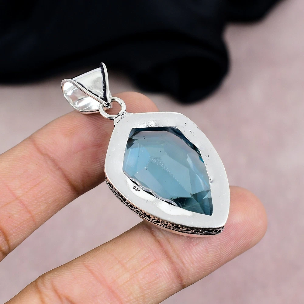 HomeBlue Topaz Sterling Silver Handmade Pendant Jewelry Gift for Her
