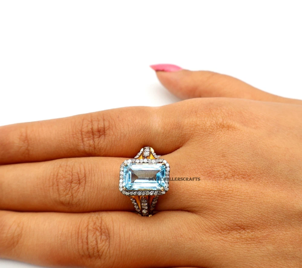 Created with Eselt - eBay Listing Templates Created with Eselt - eBay Listing Templates Our Store Seller Profile Feedback About us Contact Created with Eselt - eBay Listing Templates Blue Topaz 925 Sterling Silver Pave Diamond Statement Ring Victorian Jewelry. About Item ! Blue Topaz 925 Sterling Silver Pave Diamond Statement Ring Victorian Jewelry. This exquisite statement ring combines timeless elegance with a touch of vintage allure. Crafted from high-quality 925 sterling silver offering a classic yet refined look. At its center, a stunning Blue Topaz stone captures the light with its deep, vibrant hue, adding a pop of color that enhances the design. Surrounding the topaz, pave diamonds are meticulously set into the band, creating a shimmering halo that amplifies the stone’s brilliance and adds a luxurious sparkle. The ring's Victorian-style design is characterized by ornate scrollwork and detailed craftsmanship, giving it an antique, romantic feel that makes it stand out as both a statement piece and a collectible treasure. Whether worn for special occasions or as an everyday accessory, this Blue Topaz and Diamond ring is a perfect combination of vintage charm and modern sophistication, ideal for those who appreciate the beauty of finely crafted, unique jewelry. Features: Material: 925 Sterling Silver Main Stone: Blue Topaz Accent Stones: Pave-set Diamonds Design Style: Victorian-inspired, vintage, ornate Finish: High polish with intricate detailing Band Width: Varies (typically around 2-4mm, depending on design) Ring Size: Customizable (available in a range of sizes) Perfect for: Statement jewelry lovers Vintage and antique enthusiasts Special occasions like anniversaries, engagements, or birthdays Those seeking a bold, eye-catching piece with a rich historical design RETURN POLICY : Your satisfaction our priority. returns are available within 30 days of the item's arrival. 100% money back or exchange guarantee on. Shipping : we offer worldwide shipping item will be shipped within 2 day after payment is cleared. the delivery time usually takes 9 To 12 days & depending which country & location. Gemstone Shape : Emerald Ring Size : All Size Available Main Stone Color : Blue Made in India Created with Eselt - eBay Listing Templates Created with Eselt - eBay Listing Templates Links Our Store Seller Profile Feedback About us Contact More items Are you looking for something similar? See our other items! Show more items Contact Give us a call Send us a message