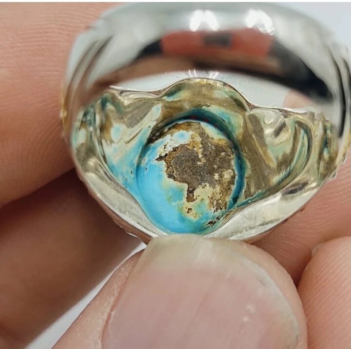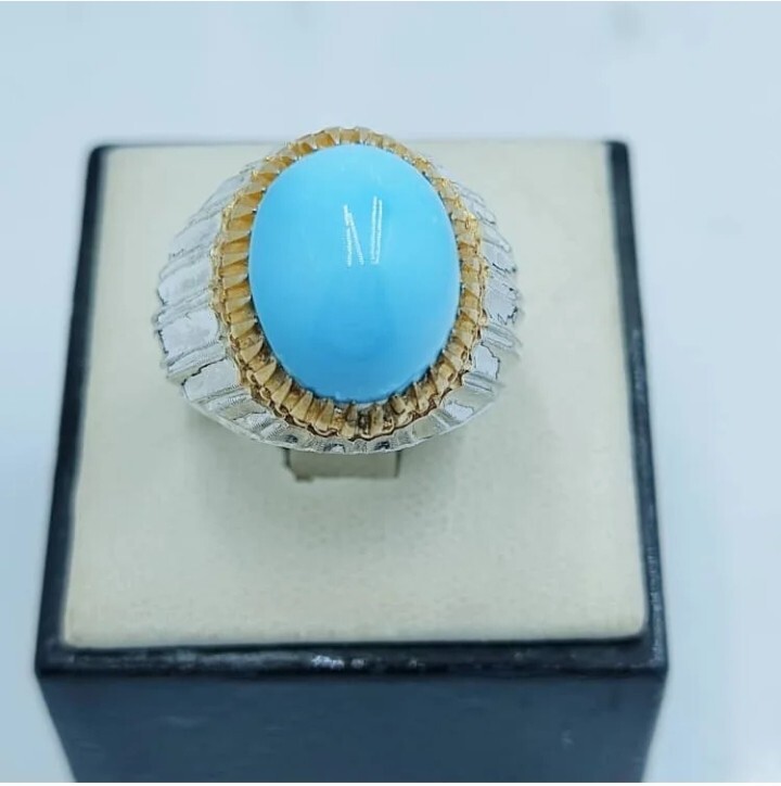 Blue Turquoise Sterling Silver Gemstone Fine Rings Ring 925 Metal Type: Natural ,Unheated Untreated Metal : Silver925 Stone Colour: Blue Feroza Stone Weight: 3.0Grm Stone Shape: Oval Treatment: No Gemstone: Turquoise| Feroza Ring sides area is gold Plated colour ITEM TYPE : Handmade Ring will be shipped via Fedex priority Service Return Policy Buyer pay Return Shipping Label Charges