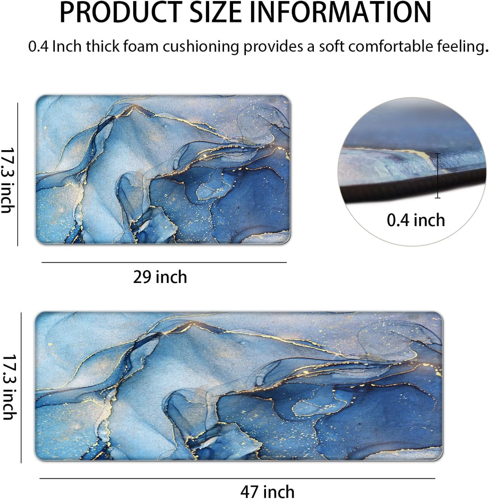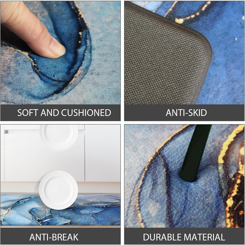 Store New Arrivals Add to Favorite View Feedback Contact Blue Kitchen Rugs Set of 2 Kitchen Mats Cushioned anti Fatigue Mat Abstract Marble Kitchen Mat Waterproof Non Slip Kitchen Floor Mat Comfort Memory Foam Standing Mat for Kitchen Floor Description Weave Type Machine Made Pattern Abstract Country of Origin China Is Stain Resistant Yes Theme Abstract Number of Pieces 2 Room Type Kitchen Material PVC Model Name Blue Kitchen Rugs Set of 2 Item Thickness 0.4 Inches Indoor/Outdoor Usage Indoor Water Resistance Level Waterproof Item Weight 4.79 pounds Pile Height No lint Construction Type Machine Made Color Blue Shape Rectangular Back Material Type Rubber Product Dimensions 76"L x 17.3"W Product Care Instructions Hand Wash Only Size 17.3" x 47 "+ 17.3" x 29 "--0.40 inches ANTI FATIGUE MAT: Designed with your comfort in mind, our kitchen runner rug are cushioned and anti-fatigue, providing support for your feet and legs while standing for extended periods. You can say goodbye to aching feet and hello to a more comfortable cooking experience. KITCHEN RUGS NON SLIP: Safety is our top priority, which is why our anti fatigue mat are equipped with a non-slip backing. This ensures that they stay securely in place, even on slippery surfaces, giving you peace of mind while working in the kitchen. EASY TO CLEAN: Our kitchen mats for floor 2 piece are made of high-quality PVC material, ensuring durability and long-lasting use. The waterproof feature makes them resistant to spills and stains, making cleanup a breeze. Simply wipe them clean with a damp cloth or sponge, and they'll look as good as new. HIGH-QUALITY: Designed for long term use; anti fatigue mats for kitchen floor are durable high density foam and textured backing will not bottom out over time; premium strength materials offer long lasting support. VERSATILITY: With dimensions of 17.3” x 29” and 17.3” x 47”, our memory foam kitchen mats are the perfect size for most kitchen spaces. The 0.4-inch thickness provides just the right amount of cushioning without being too bulky. Product Description Are you tired of standing on hard kitchen floors for hours while cooking or doing dishes? Look no further than our GulongYa Kitchen Mat! Our kitchen rugs is specially designed to provide ultimate comfort and support, thanks to its cushioned anti-fatigue design. The 0.4-inch thickness helps reduce fatigue and relieves pressure on your feet, legs, and back, allowing you to cook and work in the kitchen for longer periods without discomfort. Size:17 x 29 + 17 x 47 inch Thickness :0.4 inch Color: Blue GulongYa Kitchen Mats for Floor 2 Pieces kitchen rugs set of 2 -17 x 29 inches and 17 x 47 inches - our kitchen mat provides ample coverage for your kitchen floor. In addition to its functionality, our kitchen mat is also stylish. With its sleek design and neutral colors, it seamlessly blends into any kitchen decor. Not only is our kitchen floor mat comfortable, but it is also practical and easy to maintain. With its waterproof surface, spills and stains are easily wiped away, protecting your floors from damage. Cleaning is a breeze, so you can spend more time enjoying your culinary adventures and less time worrying about messes. 10mm(0.4inch) Ergonomically thick cushioned anti-fatigue kitchen floor mats and runner create a perfect blend of support and softness for standing while cooking in the kitchen. Our kitchen rug and runner sets come with non-skid bottom, they are not easy to remove so that you can focus all your energy to enjoy the cooking time. Kitchen floor mat set anti fatigue are designed to be waterproof, oil/moisture resistant, will not collect dirt or pet hair; Just wipe clean with damp cloth if it get dirty, very easy to clean. Laundry Room Mat Unique designed padded kitchen rug set with unique black and white chef kitchen design is a true cook's classic color, provides a warm and bright accent for your home and kitchen. Yago Mat Antifatigue runner mats thick comfort standing mat spreads your weight, takes the sting out of standing while at work, helping you stay up with less fatigue. Office Desk Mat Comfort chef mat set is ideal for home and commercial use, will be used as kitchen runner mat, laundry room mats, inner door mats, yoga mats and more! ABOUT US We offer the best prices around on high quality products. Our E-store includes media such as books, movies, music and games while offering electronics, toys, sporting apparel, clothing, tools, general home, garden items and more. SHIPPING We are always working hard to ensure your package arrives as soon as possible. Please understand that some factors like weather, high postal traffic, and the performance of shipping companies are outside of our control. We offer free shipping to the lower 48 states and ship within 2 business days of payment, usually sooner. We do not accept P.O. Boxes. Please provide a physical address. For shipping outside of the continental USA, we only use eBay's Global Shipping Program.The item is shipped to KY and then sent to the rest of the world. International customers are responsible for all duties and taxes. Continue to check out in order to calculate costs for shipping the item to your country. Messages regarding eBay's Global Shipping Program MUST be directed at eBay EXCLUSIVELY. RETURNS We offer a 30-Day Return Policy on items which you are not completely satisfied with. You have the option for a full-refund or an exchange of the item. No returns are available on items shipped outside of the USA. PAYMENT We accept PayPal. CONTACT US This page content is yet to come Please ad us to your favorite seller and visit again later Thank You CUSTOMER SATISFACTION We try our very best to make sure every customer is completely satisfied. If there's a problem, message us! We're happy to help. WE ACCEPT Copyright © 2021 AutoDS. | All Rights Reserved