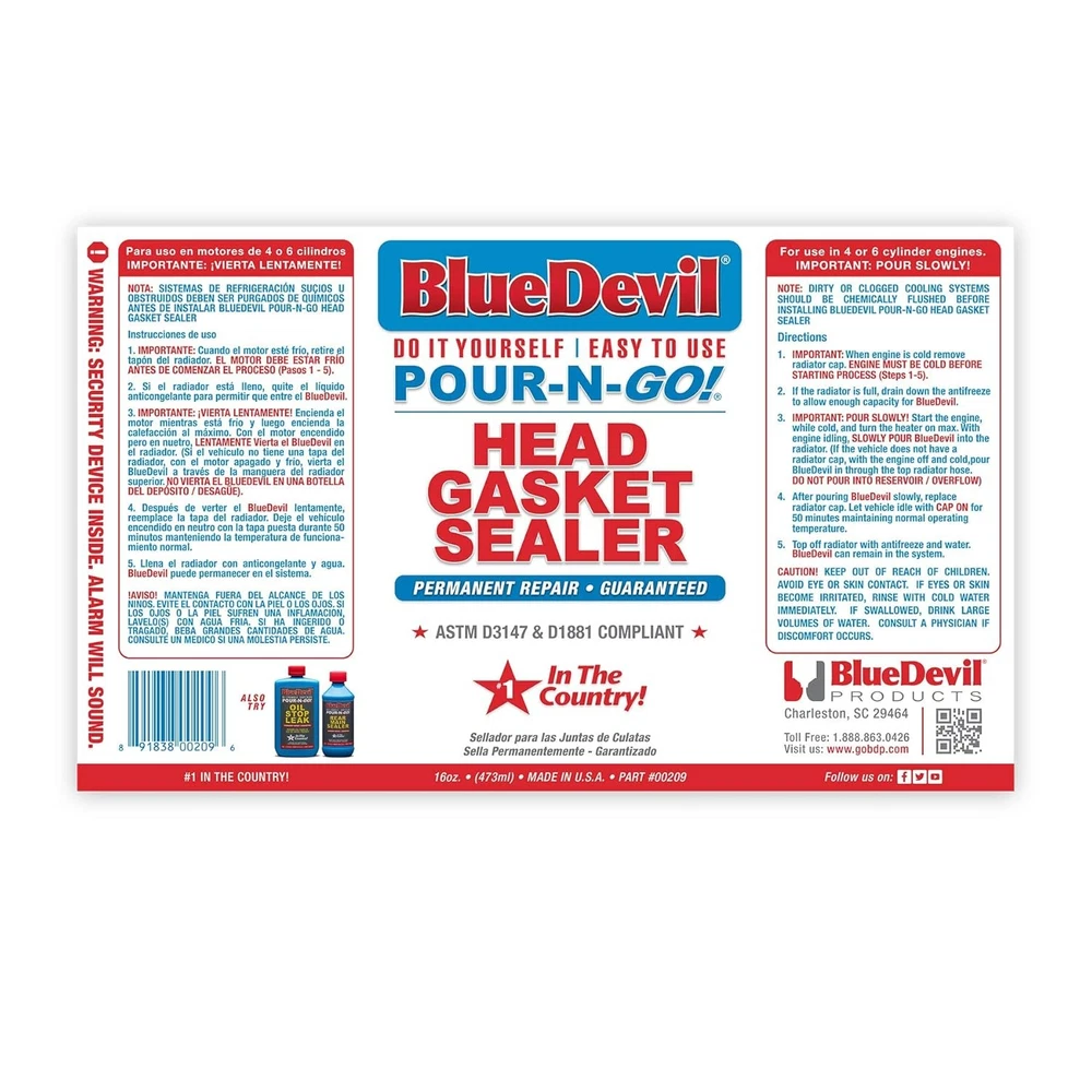 Free eBay listing template designed by dewiso.com BlueDevil Products 00209 Pour-N-Go Head Gasket Sealer - 16 Ounce FREE AND FAST SHIPPING! About this item Easy to use: Pour-N-Go, Do It Yourself formula is designed to be easy to use, allowing you to quickly and easily seal leaks in your engine without the need for any special tools or skills. Permanent seal: This product is formulated to provide a permanent seal for your head gasket, ensuring that you won't have to worry about leaks or other issues down the line. It will repair and seal leaks in blown head gaskets, warped or cracked heads, heater cores, and freeze plugs. Compatible with all types of engines: Compatible with gasoline and diesel engines, making it a versatile product that can be used on a wide range of vehicles. Safe to use: Contains no solid or particulate matter and will not clog or harm your engine. It bonds to metal, aluminum, cast, alloy, or plastic, making it safe to use as a permanent seal for your head gasket leak Product We offer a 30-Day Return Policy on items which you are not completely satisfied with. You have the option for a full-refund or an exchange of the item. No returns are available on items shipped outside of the US . Shipping We offer Free Shipping to the US and ship within 2 business days of payment, usually sooner. We use UPS express shipping. That's why your products are usually delivered within 3 days . Contact We try our very best to make sure every customer is completely satisfied. If there's a problem , message us! We're happy to help. 24/7 live chat available.
