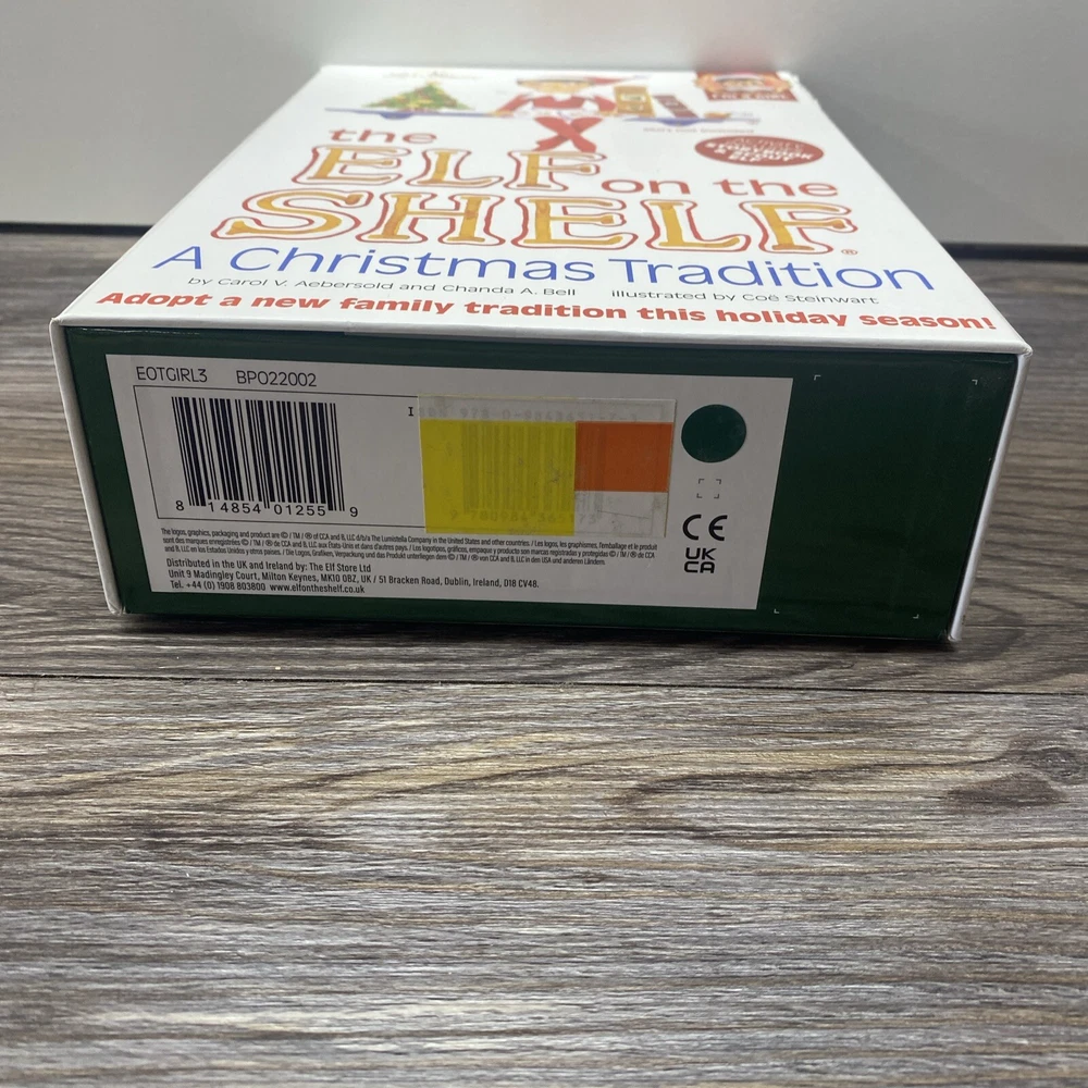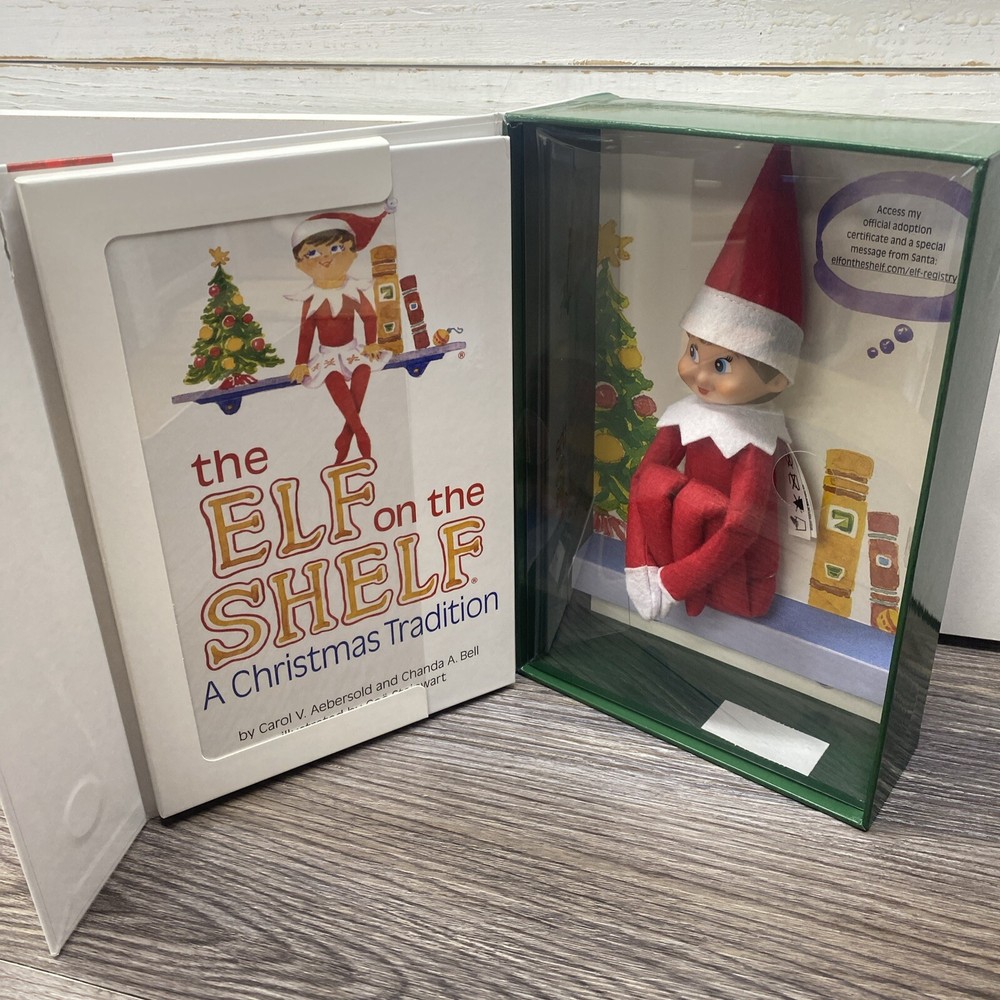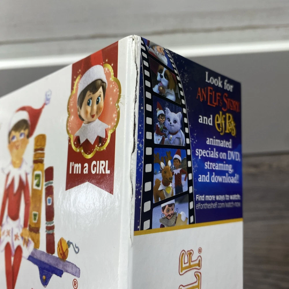 The Elf On The Shelf Blue Eyed Girl Doll Light Skin Christmas Story Book NEW Get into the Christmas spirit with The Elf On The Shelf Blue Eyed Girl Doll! Its brand new, sealed (Box has wear and dings, and a tear on the lid door). I Will ship safely and securely bubble wrapped and in a unmarked Box. | Will ship as soon as possible.