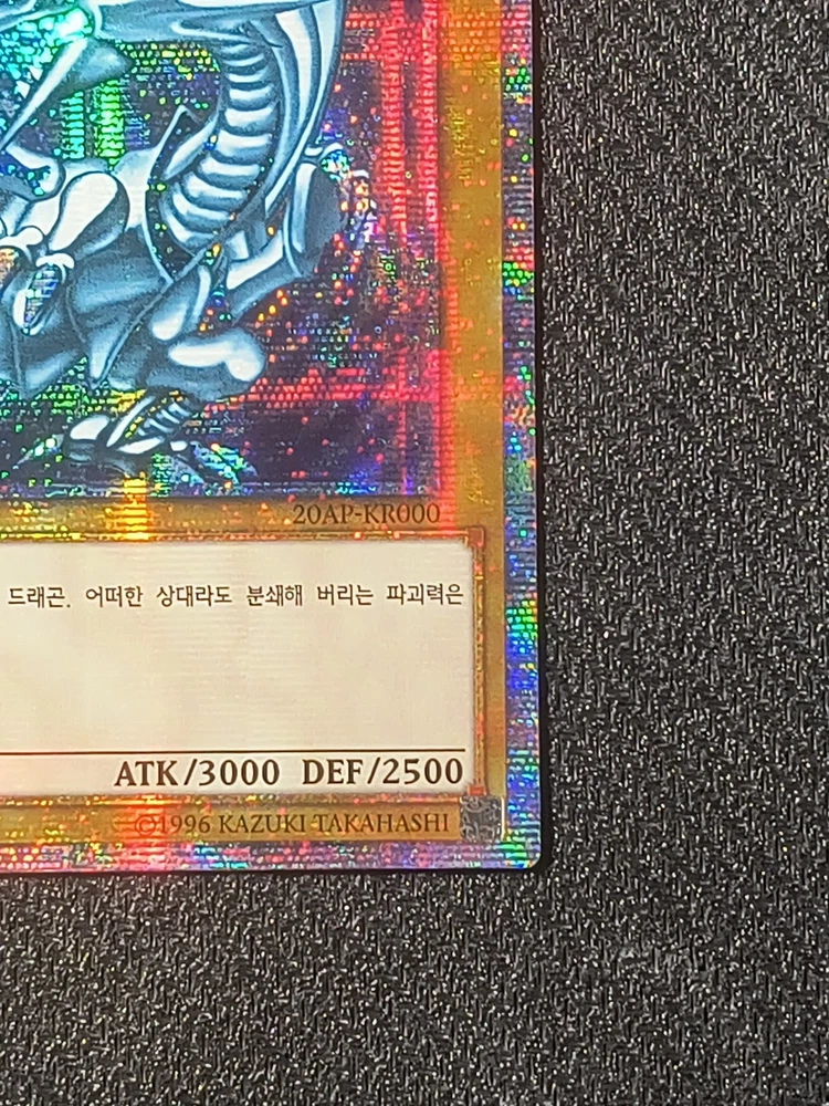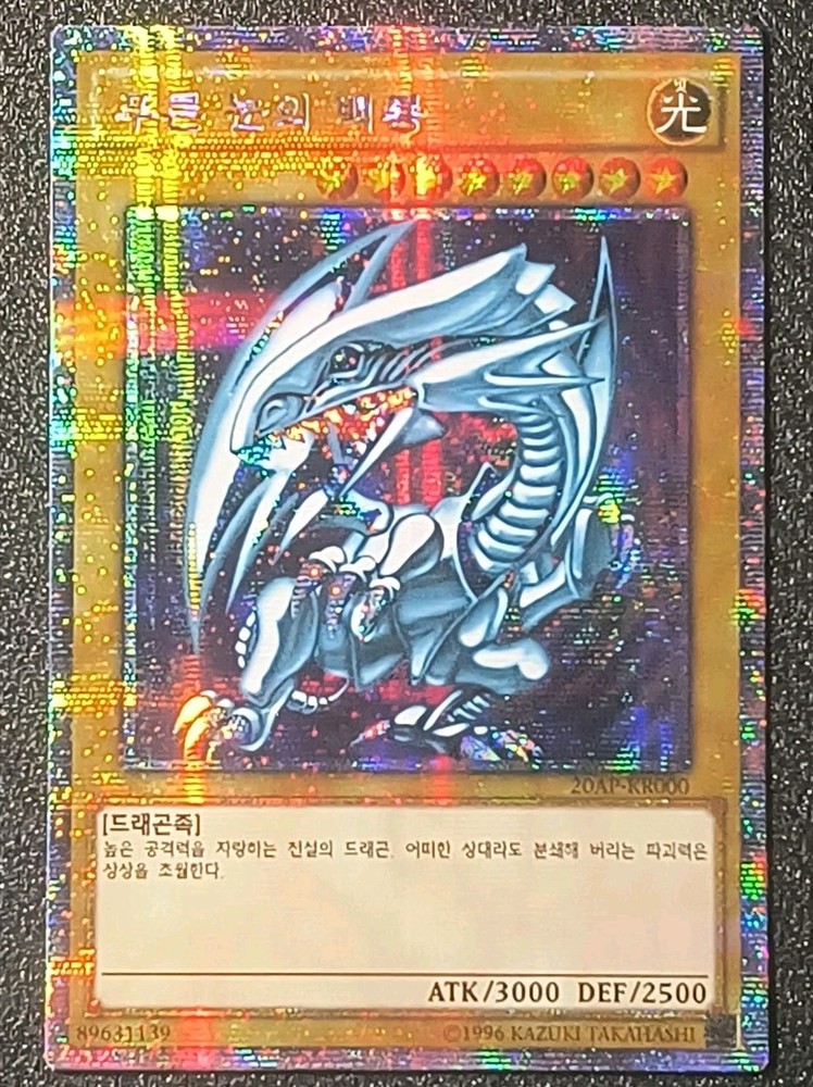 The product is a secret rare Yu-Gi-Oh! card named "Blue-Eyes White Dragon" from the 20th anniversary packs wave 1. This Korean version card features the character blue eyes white dragon and has a secret rare rarity. Manufactured by Konami, the card is of standard size, has a foil finish, and belongs to the monster card type.Pretty darn rare and cool for fans and collectors of the Yu-Gi-Oh! TCG game.