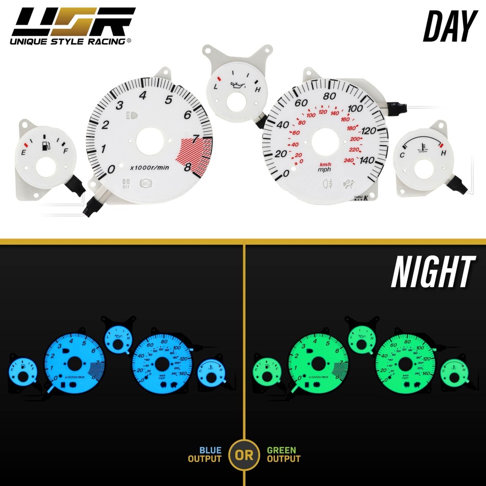 ATTENTION: For fitment and address issues, we will contact you through eBay message system first and by phone. If we are unable to get a hold of you or we cannot ship your order within 24 business hours after your order is placed, we will cancel the purchase instead. Please be sure you check product info carefully and enter your address correctly before purchase. Thank you. visit our store | View feedback | Sign up for our newsletter Please read and understand our complete description and policies/terms below prior to buy. EL-AC001-4 DESCRIPTION Product Details: This listing is for a BRAND NEW Blue/Green Glow Gauge Overlay with an Inverter Dimmer Switch Fit for: 1998-2005 Mazda Miata MX-5 - NB chassis (Please always check the top speed and Redline on RPM matches between your stock instrument cluster vs. Glow Gauge set sold here) Features: * Upgrade to a more Aggressive Blue or Green Output Glow Gauge * Made by ISO2001 certified manufacturer, Excellent Quality! Specs: * Brand: Unique Style Racing (USR) * Type: Glow Gauge Overlay * Color: White Gauge Face by Day / Blue or Green Glow by Night * Surface: Non-Glare/Scratch resistant * Install Process: These gauges do not require the removal of the gauge needles for installation. Though we provide reference installation links upon request, no installation instruction will be included. In the Package: * x1 Glow Gauge Overlay Set * x1 12V Power Inverter Switch Special Note: * Though we provide reference installation link (at buyer request), we highly suggest professional installation. * WARNING: This is the Gauge FACE overlay ONLY. The entire gauge cluster is NOT included. You lay the Overlay face on top of your existing gauge cluster, as this gauge face DOES NOT replace your STOCK cluster. The Glow Gauge Overlay Face here can only worked with the 12V power inverter supplied and the 12V power inverter dimmer should NOT be connected to stock gauge cluster's own dimmer for power. Buyer's discretion is advised, please purchase the item accordingly!! Important Notes: - Although DIY is possible, CERTIFIED & LICENSED PROFESSIONAL INSTALLATION is HIGHLY SUGGESTED . - We do not provide Installation Instruction except the manufacturer's original ones if there is any. - Direct OEM STOCK Replacement - No modification needed to fit the specified years / make / models / trims. - Our Products Are SPECIFICATION SENSITIVE and we ship DOOR to DOOR ONLY. Any package being sent to "FORWARDING COMPANY" is not our responsibility. - You, as the buyer / consumer are solely responsible for all damages and losses. - We highly recommend you to buy new gaskets prior to install the product you purchased from our company since the stock ones by now should have been worn out, therefore, it is easily allowing moisture to get in and create condensation which is NOT due to the product that has leak, but bad gaskets. - Some EXCEPTIONS For Warranty Claims: A.) No visible / physical damages to the product and / or warranty is void, B.) Alteration to the product will result in termination of warranty, C.) Be sure the stock gaskets or rubber seals are not torn and worn as you will need to reuse them when you replace your stock lights with ours. You will also be asked for photos that documents any *leaking*, *misting*, *fogging up* and *condensation* issues, as well as the condition of your stock gaskets or rubber seals. and lastly, D.) All of our lighting assemblies are NOT compatible with XENON HID and LED-type bulbs. Please use either incandescent or halogen bulbs per advertisement. - Please be sure to check the provided PHOTOS, read the DESCRIPTION and ask QUESTIONS before purchase. Thank you for your business. ABOUT US We're genuine and honest sellers and we carry great selection of the quality products to choose from, at a competitive pricing. Every order is carefully packaged and inspected by three of our staff using the latest technology to ensure safe shipment to you. We value good relationship with our customers and if you have any question or concerns regarding a sale, please do feel free to contact us first. Please do check your ebay message often for your order status, we will contact you for any delay that is caused by the payment or shipping complication arises from processing your order. We hope you enjoy your purchase! PAYMENT We accept payment by: Paypal. We accept PAYPAL only at this moment for all ebay transactions and MUST ship to paypal's listed address. 1.) If you are using eBay?s checkout system, please ensure that your registration information is current and will match what you have on PayPal. We will not be able to accommodate to change the original address we receive at the time of payment with an alternative one, once the transaction is completed via eBay and PayPal. 2.) We are required to ship to the address attached to your payment only. 3.) We will not be able to ship to an alternative address besides the original address shown on your PayPal payment detailed page. 4.) Please DO read and understand the policies / terms prior to buy to avoid any future discrepancy from occurring. Thank you for your cooperation! SHIPPING Please read and understand our complete policies/terms below or ask question if you have concerns prior to buy. 1.) Free shipping only applies to the listings that have the ?Free Shipping? icon displayed and for completed transactions. Any canceled, incomplete, refused or undeliverable packages are subjected to a 20% re-stocking fee + all shipping related fees. 2.) Shipping costs incurred are non-refundable under any circumstance. Shipping costs are incurred and paid to the shipping courier and they are not refundable. 3.) We DO NOT ship to APO / FPO, GUAM, MP, PUERTO RICO (PR) and VIRGIN ISLAND (VI) 4.) INTERNATIONAL COUNTRIES: Buyer is responsible for all Brokerage Fees, Taxes & Duties - which may be charged upon delivery. Please contact your local shipping agent to determine your estimated taxes & duties. 5.) Pick up / Will Call servic