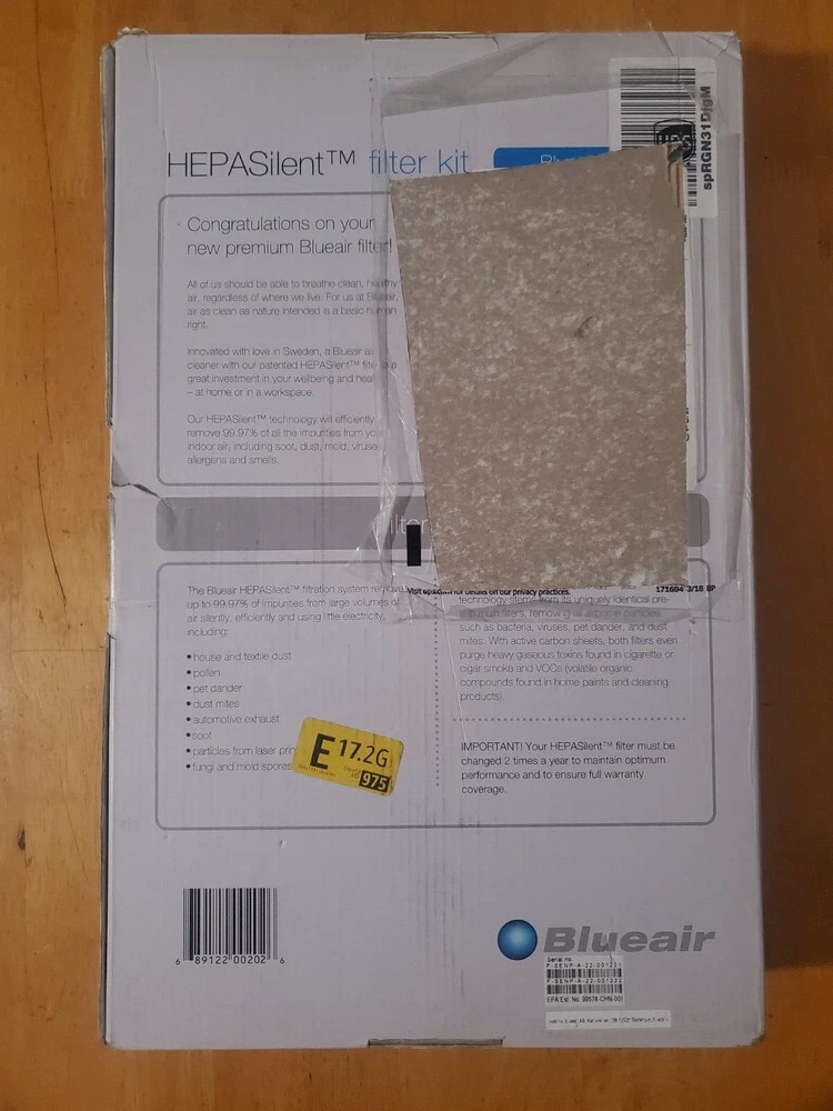Blueair Hepasilent Filter Kit Replacement Filters. Condition is New in Open Box. Shipped with USPS Mail. Comes with 2 air filters and 1 activated Carbon filter. Sealed in Factory Plastic. Only what you see in the pictures is included. What you see is what you get.