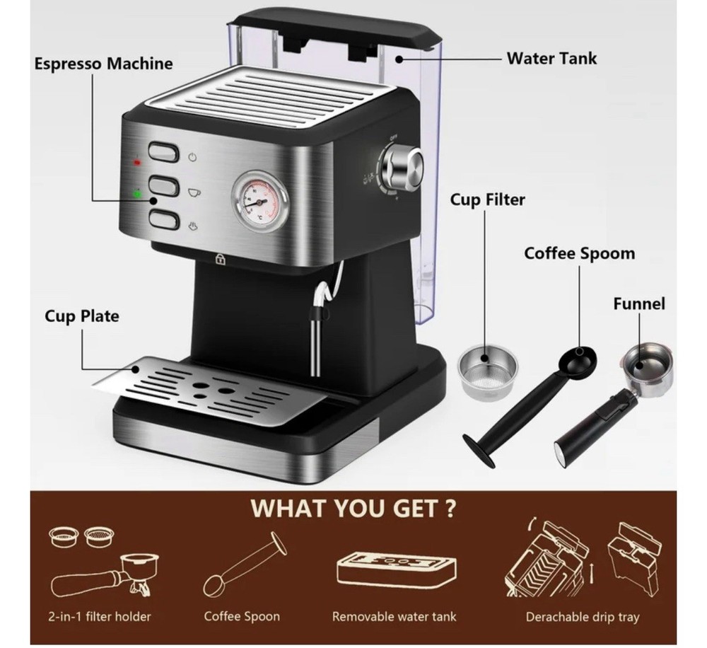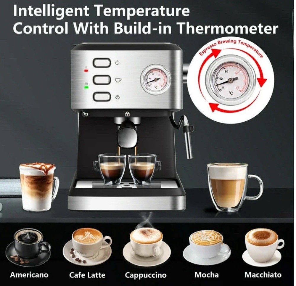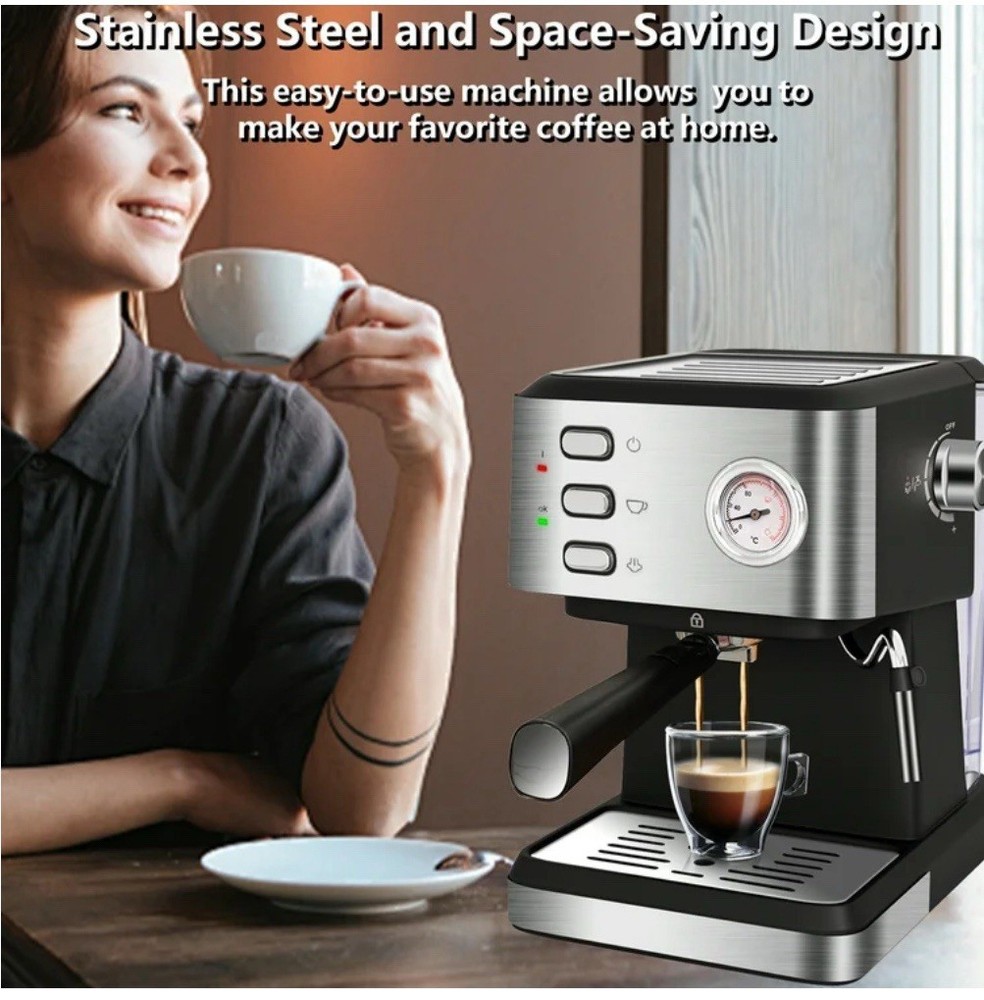 $ 174.24Espresso Machine,20 Bar Semi-Automatic Espresso Maker with Milk Stainless Steel