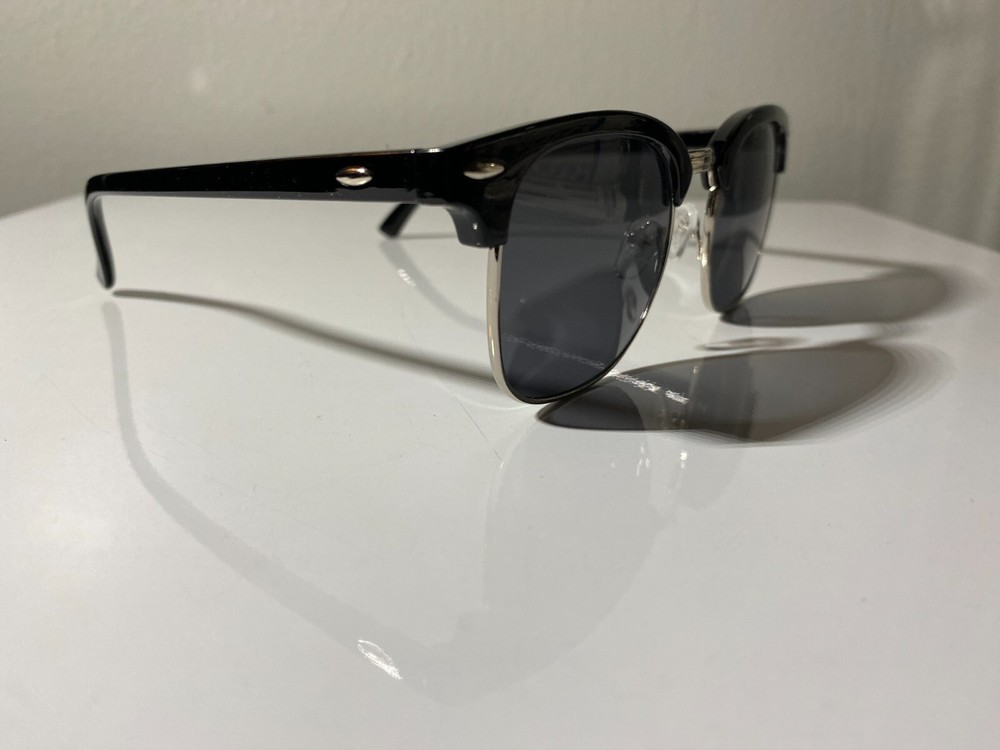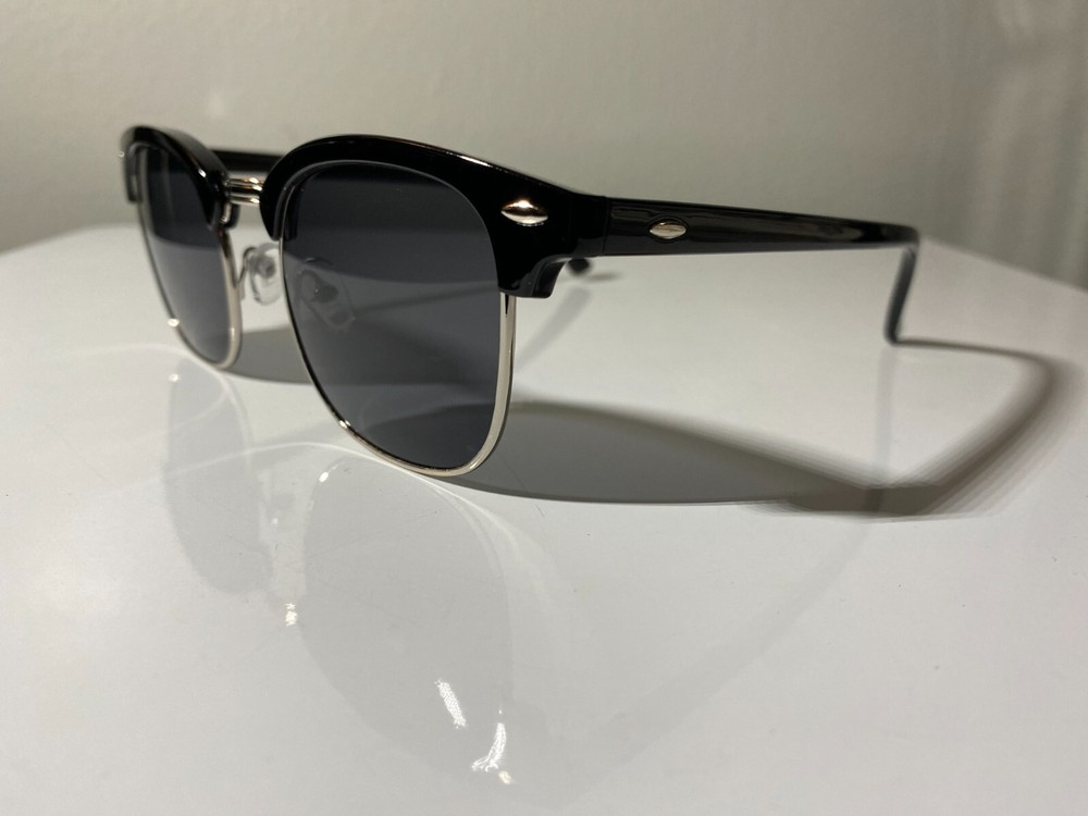 Classic vintage style men's sunglasses with black and silver frame with smoke black lenses. Great price, especially considering inflation.