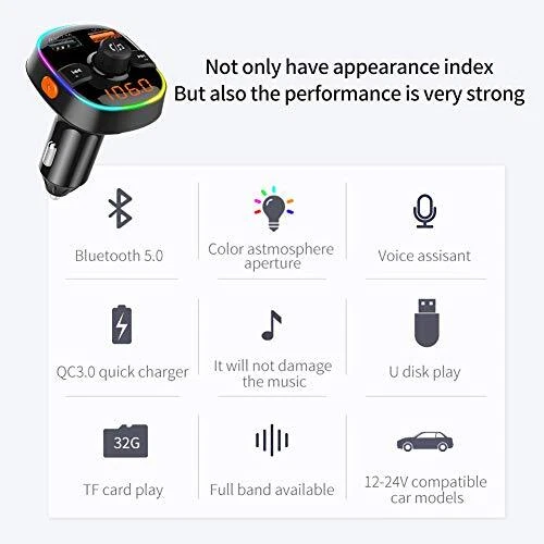 Return Policy Fast Delivery Trusted seller Bluetooth 5.0 Car FM Transmitter for Car 12V~24V Noise Cancelling MP3 Player 7 Color LED Charger Adapter Supports QC 3.0 Fast Charge Handsfree Call TF Card USB Flash Drive (black-BC52) Product Description LED dot matrix screen, real-time monitoring of battery voltage, Below 12.0V, the battery needs to be replaced, t is a danger of short circuit and fire.Bluetooth one-touch link of mobile phone can realize high-definition noise reduction hands-free calling! Intimate voice reminder to avoid inconvenience caused by driving. QC3.0 FAST CHARGING : Dual USB ports, simultaneous dual charge: quick charge 3.0 port, charge efficiency is more than 80 percent, another smart 2.4A charge port. Bluetooth 4.1 technology imizes device compatibility, pair speed, data transmission rate and connection stability between car FM transmitter and Bluetooth device Bluetooth connection allows wireless streaming of music from portable devices. SD card slot for playing music or audio books from SD memory cards; USB port music playback in MP3 The bluetooth fm transmitter is support all bluetooth enabled devices, such as iPhone, iPad, Tablet, HTC, Samsung, Sony and other, easy to setup and use. Shipping Returns Payment Shipping Shipping is FREE to all addresses other than APO/PO boxes in the lower 48 states. All our stock ships from US-based warehouses. Shipped via USPS or UPS (depending on location and package weight) Unless stated otherwise, all orders will ship within 24-72 hours of your payment being processed. Check our feedback to see the great reviews of FAST shipping we offer. Returns Seller does not accept returns Payment We currently accept payment via eBay managed payments only. Once payment is cleared, we will dispatch your shipment within 1-3 business days. Please refer to the "Shipping" tab for more information regarding shipping speed to your destination.