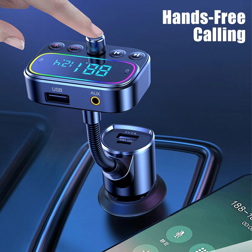Product Description Bluetooth 5.0 Car Wireless FM Transmitter Adapter 2x USB + Type-C AUX Hands-Free Features: With dual microphones and CVC noise cancellation technology, this car Bluetooth adapter ensures clear sound and eliminates background noise and echo. Its advanced Bluetooth 5.0 chip provides a stable connection and fast transmission, delivering crystal clear calls and exceptional Hi-fi music streaming while driving. Equipped with a USB-C PD charging port, this Bluetooth audio transmitter charges compatible devices up to 50% in just 30 minutes. It also features a 5V/2.4A USB port for standard charging and a USB drive port that can double as a charging port. Share the charging port with friends while enjoying music. The FM transmitter includes a large LCD screen that displays the FM frequency and car battery voltage, keeping you informed about battery usage. With the power on/off button, you can easily turn off the FM transmitter without the need for constant plugging and unplugging when starting or turning off your car. Note: Charging ports can still be used even when the power is off. Enhance your car's interior with the stylish backlight circle design featuring nine color options: red, blue, green, yellow, cyan, purple, white, rainbow, and breathing rainbow. The backlight makes it easier to locate buttons accurately and quickly in the dark, ensuring safe driving. Note: The light can be turned off. Answer, redial, hang up, and reject calls with a single click of the call button. Seamlessly switch between incoming calls and music. Stay focused on the road by using for Siri or for Google Assistant to make calls, send texts, or get driving directions. Additionally, this Bluetooth car kit supports voice notifications from navigation apps, reducing the need to look at your phone frequently. Specifications: Number of Ports: Dual USB, Type-C Screen: 2.0'' LCD Screen Wireless Transmission Distance: About 10M input Voltage: 12-24V Output: 5V/3A 9V/2A 12V1.5A FM Frequency: 87.5MHZ-108MHZ Package includes: 1 x Bluetooth FM Transmitter 1 x Audio Cable Shipping Returns Contact Us Payment 1. Items sent from US warehouse. 2.Receiving time = Processing time + Shipping time 3. Processing Time: Around 1-2 business Days 4. Shipping Time: 3-5 business day it may have a little delay during some holiday (such as Christmas),any problem ,please feel free to contact 1. 30 days warranty from the purchased date. Please contact us via email before returning the defective item. 2.Our warranty does not extended to any product that are physically damaged or that are not under normal operating conditions as result of misuse or improper installation on the buyer/user's part. 3.Return items should include the original packaging and all accessories. buyers MUST contact us for the returning address. 4.In all cases, buyers pay shipping fees at their own cost to return products for exchange or refund. We will be responsible for the postage of replacements. Refund will be made upon receipt of the returned item. Pls contact us if you have any problems,we will try our best to solve for you We accept all verified payment from eBay. Shipping 1. Items sent from US warehouse. 2.Receiving time = Processing time + Shipping time 3. Processing Time: Around 1-2 business Days 4. Shipping Time: 3-5 business day it may have a little delay during some holiday (such as Christmas),any problem ,please feel free to contact Returns 1. 30 days warranty from the purchased date. Please contact us via email before returning the defective item. 2.Our warranty does not extended to any product that are physically damaged or that are not under normal operating conditions as result of misuse or improper installation on the buyer/user's part. 3.Return items should include the original packaging and all accessories. buyers MUST contact us for the returning address. 4.In all cases, buyers pay shipping fees at their own cost to return products for exchange or refund. We will be responsible for the postage of replacements. Refund will be made upon receipt of the returned item. Contact Us Pls contact us if you have any problems,we will try our best to solve for you Payment We accept all verified payment from eBay. You may also like TV Remote Control Controller For Bose Solo 5 TV Soundbar System 535 AUX1 CM525 18.99 USD Storage Case Travel Carrying Bag For Bose SoundLink 3 SoundLink III Speaker 20.0 USD 4Pcs/Set Tires & Wheels Rims For Tamiya TT01 TT02 XV01 HPS HPI 1/10 RC Car aa 22.77 USD Repair LCD Screen Hinge Flex Cable For Canon PowerShot G7X Mark II G7 X II G7X2 12.75 USD Echo Recoil Starter Assembly A051001312 A051001311 Pe-225 Srm-255 Pas-255 17.84 USD 1.99 USD Portable Adjustable Stainless Handheld Can Opener Jar Bottle Lid Remover Tool 9.99 USD powered by