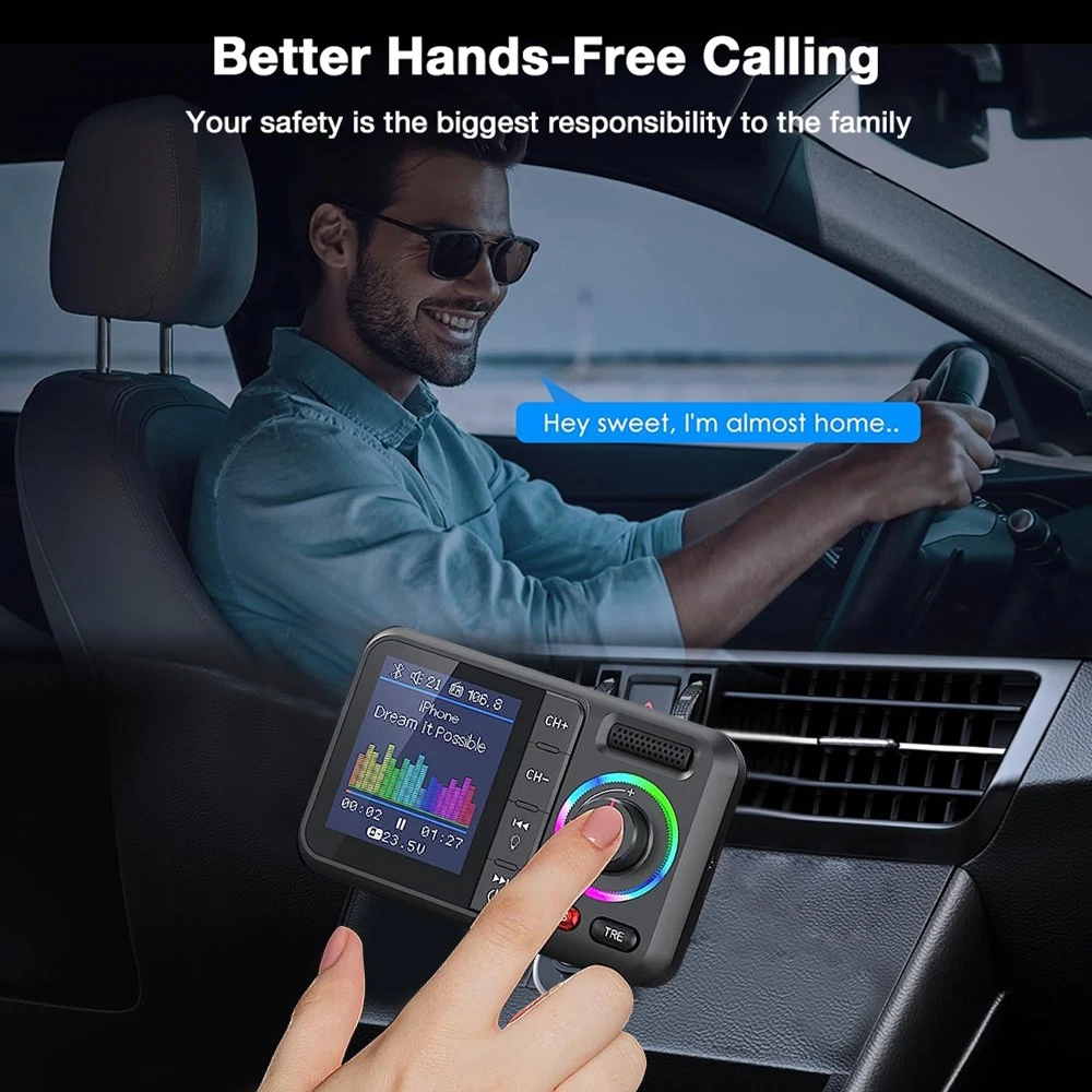 Bluetooth 5.0 FM Transmitter with Dual USB-C PD Charging and Hands-Free Calling