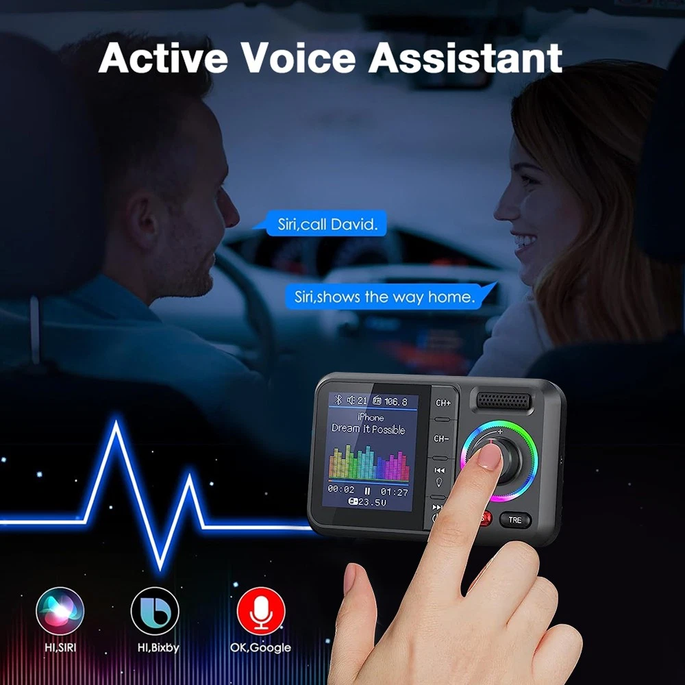 Product Description Description: Colorful LCD Screen: This Bluetooth adapter is equipped with large LCD screen, providing more information than other products. Display details include Bluetooth name, FM channels, connected device name, car voltage, music title, music count, volume, incoming phone numbers and play status. The 360° flexible design ensures a comfortable visual experience and easy access for hands-free calling. Hands-Free Calling & Bluetooth 5.0: With the latest CVC noise cancellation and Digital Signal Processor (DSP) technologies, the built-in microphone picks up your voice from all directions. The Bluetooth 5.0 chip ensures a faster and more stable connection, making it easier to stream music and make hands-free calls. It also reconnects automatically to the last paired device for convenience. Dual USB Ports & QC3.0 Fast Charging: The bluetooth FM transmitter features dual USB ports (QC3.0+2.4A), allowing you to charge two devices simultaneously with QC3.0 technology for fast charging—up to 4x faster than standard chargers. It also includes TF card and AUX ports, giving you multiple ways to play music via USB drive, TF card, AUX or Bluetooth. Note: TF card not included. Activate Siri & Hands-Free Use: Easily stay focused on the road by activating Siri or Google Assistant for hands-free calling, messaging and navigation. The large button allows you to answer, redial, hang up or reject calls with a simple press. It also supports voice notifications from navigation apps, making it even easier to stay safe and connected while driving. Enhanced Treble & Bass Control: Experience Hi-Fi sound with the FM transmitter, featuring independent treble and bass control for a personalized audio experience. Adjust the sound to your preference and enjoy audiophile-grade quality with an auto-syncing colorful music spectrum that creates the perfect party atmosphere. Specifications: Name: Car Bluetooth Player Material: ABS Color: Black Size: 82×52mm/3.22×2.04inch Bluetooth Version: 5.0 Bluetooth Distance: >7M FM Transmission Frequency: 87.5-108.0MHz FM Transmission Distance: <3M Package Includeds: 1×Bluetooth Adapter 1×3.5mm Audio Cable 1×User Manual Note: 1. Please allow 0~1 inch error due to manual measurement. Thanks for your understanding. 2. Monitors are not calibrated same, item color displayed in photos may be showing slightly different from the real object. Please take the real one as standard. Payment Shipping Returns Contact Us 1. This is the payment method we can accept: Paypal 2. You can checkout and pay immediately after the auction ends or you complete the purchases. If you need an eBay invoice sent to you by Email, please contact us before making payments. 3. Once the checkout is completed, you will not be able to include any additional purchases. We start to process and fulfill your order once payment is received. New purchases after the checkout will be processed separately. 4. Payments are expected within 4 days after the order is confirmed. Unpaid item (UPI) strike may be filed with eBay upon non-receipt of payment. 1. How much is the shipping & handling (S&H)? Our shipping and handling charges are clearly stated in the Shipping and Payments section of the item page, and we provide Free Shipping for most items. 2. For multiple purchases, the combine shipping discount will be automatically calculated when you check out and pay all of your purchases together. Items checked out separately may not be combined and the combine shipping discount will not be offered automatically. 3. Please make sure the correct Ship-To address is entered before checking out. Once the payment is completed, you may not be able to change the shipping address. We shall not be held responsible for any wrong or undeliverable addresses. 4. We usually ship within 1-2 business days of receiving cleared payment. 1. We put buyer's satisfaction at top priority. If you're not pleased with your purchases, we'll be happy to make an exchange or refund the item total price less Shipping and Handling (S&H) charges within 30 days of your purchases. 2. For any Exchange, Refund or Return, the item must be in its original condition, including the box, packaging, and all the accessories or gifts. 3. We'll provide prepaid return shipping label if the return is a result of our error. Postage reimbursement is offered only on standard mails, and it needs to be approved by our staff prior to returning. 4. Please allow up to 7 business days for returns to be processed. 5. Shipping and Handling (S&H) charges are not refundable. 1. Customer satisfaction is very important to us and our feedback rating reflects this satisfaction. If you have any question or concern, please contact us via eBay message. 2. We respond to all eBay messages as quickly as possible. Though your question will usually be answered very soon, please allow us up to one business day before you start thinking your message is neglected or the reply is avoided, because there would be time difference, non-working hours or public holidays that have prevented us from making an instant response. Payment 1. This is the payment method we can accept: Paypal 2. You can checkout and pay immediately after the auction ends or you complete the purchases. If you need an eBay invoice sent to you by Email, please contact us before making payments. 3. Once the checkout is completed, you will not be able to include any additional purchases. We start to process and fulfill your order once payment is received. New purchases after the checkout will be processed separately. 4. Payments are expected within 4 days after the order is confirmed. Unpaid item (UPI) strike may be filed with eBay upon non-receipt of payment. Shipping 1. How much is the shipping & handling (S&H)? Our shipping and handling charges are clearly stated in the Shipping and Payments section of the item page, and we provide Free Shipping for most items. 2. For multiple purchases, the combine shipping discou