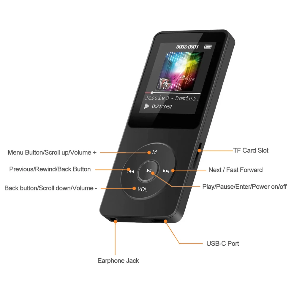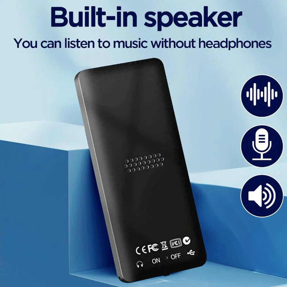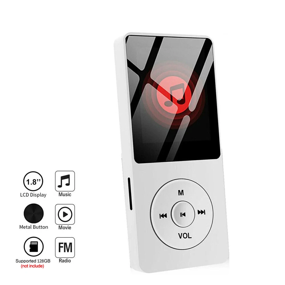 Connectivity: Bluetooth Resolution: 128*160 Audio Outputs: Headphone Jack Analog output: 3.5mm analog output Color: White/Black Product Line: Walkman Screen Size: 1.8 in Recording format: WAV Listen time: about 5-7 hours Image format: JPG/JPEG/BMP Bluetooth version: 5.0 Playable Media Format: MP3 MPN: Does Not Apply Storage Capacity: UP TO 128GB(not included) Video format: AVI ( 128*160 ) Charging Interface: Type-C Manufacturer Warranty: 3 Months Features: support music, radio, recording, video, e-book Band: AM/FM Built-in Battery: 250mAh/3.7v lithium battery Display Screen: 1.77 inches Charging time: about 2 hours Brand: Unbranded Memory Type: Micro SD Card (not include) Charging Specification: 5V/1A input Audio format: APE, FLAC, MP3, WMA, WAV, AAC-LC Memory Card Type: Micro SD Card (not include) Package Include: 1x MP3 Player,1x Charging Cable,1x Manual Type: MP3 Player E-book format: TXT document Model: Bluetooth MP4/MP3 Music Player Size: 9*3.9*0.9cm/3.54*1.53*0.35in