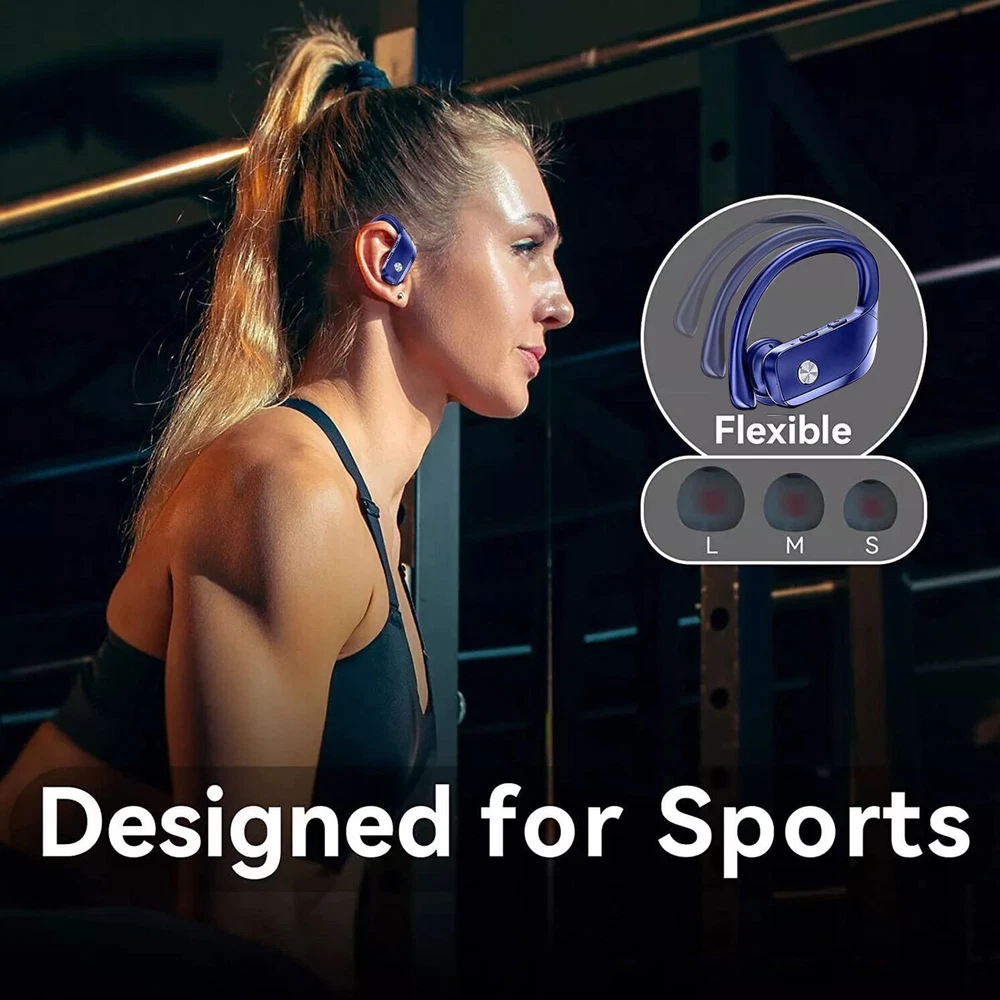Bluetooth 5.0 True Wireless Earbuds With Mic Headphones Earhook Sport Running Wireless Earbuds,Wireless Headphones HiFi Stereo Earphones 5 hours Playtime In-Ear Earbud, Bluetooth 5.0 Sport Earphones with LED Power Display for Android iOS Blue Note : There is a little plastic coating over the charging pins. pls take it off before use . Specifications: Product Name: TWS Bluetooth Headset Bluetooth Version: 5.0 Power Input : DC 5V Headset Battery Capacity: 3.7V/ 50mAh Call/Play Time: About 5 hours Charge Box Battery Capacity: 3.7V/ 600mAh Support Agreement: HSP/HFP/A2DP/AVRCP Sensitivity: 103+3dB Frequency Response Range: 20Hz-20KHz Charging Time (h):About 2hs Taking Time: 4-5hs Standby Time (h):15days Transmission Distance:10m Charging Criteria:With Charging Case Features: 1.Totally wireless high-performance earphones 2.Up to 5 hours of listening time( more than 30 hours with charging case) 3.Adjustable, secure-fit earhooks for lightweight comfort and stability 4.Reinforced design for sweat & water resistance during tough workouts 5.Volume & track controls on each earbud, voice capability, and auto play/pause 6. Dual LED Displays Charging Case: Wireless earbuds with LED display make it obvious to show the battery power of the case and ear buds. The remaining power in percentage on the screen is shown to the left of the bluetooth headphones. The right side is assigning to a charging process of each bud, there are separated power consumption indicators by 4 grids in total, each grid represents 25% power of bud. During Charging, the LED indicator light will flash. 7. Automatic Pairing and Touch Control: The Bluetooth in-ear headphones will automatically pair with each other when you open the charging box and automatically connect to the last paired device. The range can reach up to 33ft/10m away. When you put it back, the bluetooth earphones shut down and are recharging. Wireless bluetooth headphones Together with smart touch sensors, the true wireless headphones can achieve the ultimate control. Play/pause music, answer/end a call, adjust volume, next/previous track.... 8. Ergonomic Design and IP6 Waterproof: Aoslen Wireless Bluetooth Earphones, ergonomically designed to be very light and easy to carry. (S/M/L) 3 different sizes of ear caps, designed for different ear shapes to ensure a comfortable fit. This headset is IP6 Waterproof, Can withstand accidental splashes of water, sweat or raindrops, Very suitable for sports, training, running, etc Package Includes: 2 x Bluetooth Earbuds 1 x Charging Box 1 x Charging Cable 1 x User Manual 3 x Ear Cap Sets (Small, Medium, Large) 【Service Guarantee】Thanks for visiting our Store! We try to accurately describe our item to the best of our knowledge, if there is any incorrect, please feel free to let us know via message. We hope you can contact us via message with any issue before you decide to leave neutral or negative feedback or open return request or case. We will reply to you as soon as possible when we see your email at work. Payment Delivery details Terms of sales About us Contact us Payment 1.We only accept PayPal as payment method. 2.The item will be shipped to buyer’s CORRECT and VERIFIED Ebay Address. 3.We are not responsible for the package lost due to incorrect address. 4.Our price do not including any custom or duty, VAT and local tax. 5.Payment must be received within 7 days of winning the auction 6.Please contact us if you need file an extension for any late payment. Delivery details 1.All item are shipped via DHL eCommerce or USPS Frist Class express Service within 2 business days once full payment is settled.If you can't get your items in time,please contact to us first,we will check and solve it for you soon.We will reply your mail within 24 hours normally. Sometimes have a little delay due to the weekend or holiday.If you can't get our mail after 48 hours,please check your spam or contact to us with other mail address or via ebay. 2.We only ship to confirmed Ebay addresses. Your Ebay address MUST MATCH your Shipping address. 3.If you want to change the address please E-mail us right after you pay for the item. 4.SERVICE TRANSIT TIME is provided by the carrier and excludes weekends and holidays. Transit times may vary, particularly during the holiday season. 5.If you have not received your shipment within 30 days from payment, please contact us. We will track the shipment and get back to you as soon as possible with a reply. Our goal is customer satisfaction! Terms of sales 1.Please contact us via eBay Message if you have NOT received item in 30 days , we will check it with post office, and then resend or refund any missing item. 2.i n the unlikely event that your product is faulty in anyway, you must contact us ASAP and then return it within 7 Days of receipt. 3.Return shipping fee should be paid by buyer if wrong item you bought (wrong model or wrong color) and item is defective. We will provide replacement or refund after we received and confirmation. 4.if you need return, please contact and get an address for return from us, then declare your package as “Return”, write your Ebay ID and item number outside About us 1. Dear buyers, we appreciate your business, if you are satisfied with our service, 2. Please leave us a positive feedback and rate the details of the transaction (Detailed Seller Ratings) with a "PERFECT 5 Star. 3. Your recognition will make us more confident to develop business and serve you better. 4. Our goal is to make sure you are a happy buyer and pleasant shopping with us. Please email us before leaving any 1 or 2 ratings, negative feedback or open any dispute. We understand the concerns and frustrations you might have, and will do our endeavor to resolve the issues. Please give us the opportunity to resolve any problem. Contact us 1. We strive for 100% customer satisfaction on every sale we complete. 2. If, for any reason you are not satisfied with your purchase, please contact us before leaving neu