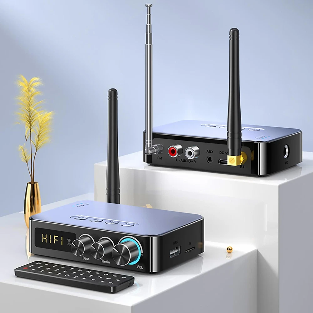 Product Description Features: Dual Transmit Dual Receive: 4-in-1 Bluetooth Adapter support RX, TX and FM, support NFC wireless connection. As an audio Bluetooth transmitter, it stream audio from TV, PC, laptop to two Bluetooth headphones. Or use it as a receiver to stream your cellphone audio to home stereo as well as any device with a 3.5mm audio jack. Enjoy the wireless tech life High-fidelity Surround Sound: Built-in Bluetooth V5.1 chip, equipped with aptX lossless transmission technology and intelligent noise reduction system, DSP digital audio processing chip, you can manually adjust the treble and bass to make the sound clearer and enhance the surround sound Long-Range Wireless Connection: The latest version 5.1 Bluetooth wireless communication standard is adopted, external Bluetooth signal gain transceiver antenna and FM radio antenna. Bluetooth receiver can achieve 100 feet (30m) range, stable transmission, audio is not easy to cut in/out Multiple Interface Options: built-in digital to analogue chip, supports 3.5 mm jack AUX, RCA, coaxial, USB flash drive , TF interface, 6.5mm audio line microphone can be connected. Comes with AUX cable, RCA cable, USB charging cable, it can meet all your connection requirements and meet different audio devices with Bluetooth and non-Bluetooth function Rechargeable & Long Playtime: Built-in with 1200mAh battery that supports the receiver for non-stop streaming up to 8-10 hours, long standby time of 30 days. Can be used while charging. Compliance with safety certification, longer service life Specifications: Bluetooth Version: Bluetooth V5.1 Support bluetooth protocol: A2DP/AVRCP/HSP/OPP/GATT/SM Battery: 3.7V/1200mAh Inpt: Type-C 5V/1A Transmission Range: 30m (barrier-free) Interface: 3.5mm AUX+RCA+FM+USB+TF+6.5 MIC FM: 87.5-108MHz Format: MP3/WAV/WMA/APE/FLAC/G729/M4A/ALAC/AMR/DTS/MIDI/G726/MTY Package includes: 1 x NFC Transmitter Receiver 1 x Remote Control 1 x FM Antenna 1 x 3.5MM Audio Cable 1 x RCA Audio Cable 1 x Type-C Charging Cable 1 x User Manual Shipping Returns Contact Us Payment 1. Items sent from US warehouse. 2. Receiving time = Processing time + Shipping time. 3. Processing Time: Around 1-2 business Days. 4. Shipping Time: 3-5 business day. It may have a little delay during some holiday (such as Christmas), any problem, please feel free to contact. Always believe we can figure things out with communication, if it comes to return, the pacakge must be intact and the same as you receive. If you have any questions, please feel free to email our service specialists 24 Hours a Day, 7 Days a Week. We will reply you ASAP. Return/refund is accepted within 30 days after the buyer receives the item. NO exchange will be accepted after 30 days from the date when the item is received. Please contact us first before returning your product!!! If you have any questions, our Customer Service staffs welcome you to email us. We strive to answer all questions and resolve any problems as quickly as possible. We care about our valued customers, and will always try to help you. So if you have any problems, You can contact us 7*24, we will reply at the first time. We accept all verified payments from ebay. Orders will be shipped after receiving cleared payment. Shipping 1. Items sent from US warehouse. 2. Receiving time = Processing time + Shipping time. 3. Processing Time: Around 1-2 business Days. 4. Shipping Time: 3-5 business day. It may have a little delay during some holiday (such as Christmas), any problem, please feel free to contact. Returns Always believe we can figure things out with communication, if it comes to return, the pacakge must be intact and the same as you receive. If you have any questions, please feel free to email our service specialists 24 Hours a Day, 7 Days a Week. We will reply you ASAP. Return/refund is accepted within 30 days after the buyer receives the item. NO exchange will be accepted after 30 days from the date when the item is received. Please contact us first before returning your product!!! Contact Us If you have any questions, our Customer Service staffs welcome you to email us. We strive to answer all questions and resolve any problems as quickly as possible. We care about our valued customers, and will always try to help you. So if you have any problems, You can contact us 7*24, we will reply at the first time. Payment We accept all verified payments from ebay. Orders will be shipped after receiving cleared payment. 1-Pin Walkie Talkie Handheld Speaker Mic With PTT For Motorola Talkabout Radio 16.99 USD 19.99 USD 2 Strings in 4 Pieces Dog Cat Collar Bells for Collar Loud Brass Pet Bells 12.39 USD 19.99 USD Acoustic Guitar Strings Bridges Adjustable Shaft Saddle Nut Guitar Accessories 15.99 USD 19.99 USD Mini ST-838 Power Amplifier 400W 12V 2.1Channel Powerful Stereo Audio HiFi Home 23.99 USD 19.99 USD Cable Audio Cord Line 3.5mm Jack for HyperX- Cloud/Cloud Alpha Gaming Headset 14.69 USD 19.99 USD 2PCS 6ft Extended Extension Cable for Nintendo 64 Controller N64 Game Console 13.69 USD 19.99 USD 35cm-100cm NP-FW50 Dummy Battery Adapter USB Cable for Sony A7 A7R2 A6500 A6400 22.99 USD 19.99 USD 18650 Battery Capacity Tester Internal Resistance Power Detector Charger Meter 16.99 USD 19.99 USD 8 in 1 Outdoor Hiking Hunting Digital Compass Altimeter Barometer Thermometer C 20.99 USD 19.99 USD New 10PCS BNC Female to F Type Male RF Coax Coaxial Cable Adapter Connector 12.69 USD 19.99 USD Non-powered Suspension Plate Kit For Tamiya 1/14 RC Tractor Trailer Truck C 25.59 USD 19.99 USD 3Pcs Front Seat Covers Replacement For Club Car DS 1982-2000.5 Golf Carts 37.99 USD 19.99 USD Heavy Duty Metal Clamp Clip 1/4" Screw For Photo Studio Camera Flash Light Stand 12.39 USD 4Pcs Propeller Fast Release Foldable Snap-on Blades For DJI SPARK Drone 4730F f 13.19 USD 19.99 USD 50 Pack Spare Pins for Watch Band Strap Link Remover Adjuster Repair Tool Kit D 8.88 USD 19.99 USD Blade Adapter Attachment Maintenance Kit For STIHL String Trimm