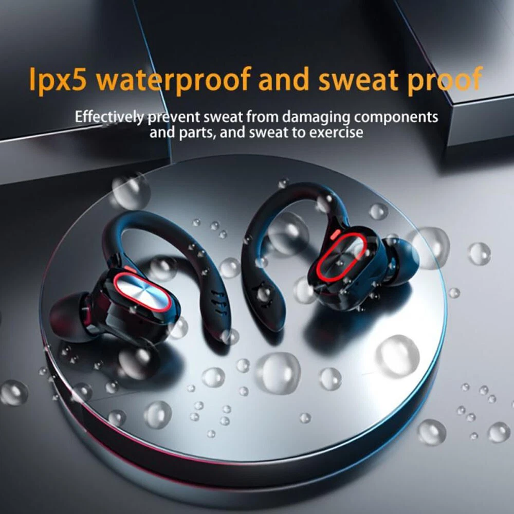 Features: -100% brand new and high-quality made. -Silicone Earhook for Sports,ensure your headphones fit comfortably in ear. -Bluetooth 5.2 chip technology and 10mm drivers let you experience crystal clear HD stereo sound and powerful bass. -It comes with charging box, easy to charge. LED Digital Power Display: show the battery level of the charging case and earbuds. -Just take the bluetooth headphone out of the charging box, open your bluetooth, connect with it. When you put it back, the earphones shut down and are recharging. -The headset could automatically power on and match the phone after picked up, eliminating the troublesome operation of manual startup and pairing. -Touch control technology: you can easily play/pause/skip music, answer/end/reject calls or activate voice assistant with simple-tap operating. -The built-in audio processing system eliminates noise and echo very well, making it ideal for listening or watching at work. -It provides you with wireless freedom and provides you with the most comfortable wearing experience. Specification: -Bluetooth version: Bluetooth 5.2 -Transmission distance: 10m -Charging box battery capacity: 800mAH -Listening time: About 4 hours (single use with full battery) -Charging time of headset: About 40 minutes -Charging time of charging box: about 1H -Frequency band/band: 2.4-2.485GHz -Maximum transmitted power: +2DBm -Color: Black, Gray, Red. Package Included: 2 X Wireless Bluetooth Headsets 1 X Charging Box 1 X Type C Charging Cable 2 X Pair of Ear cap 1 X Manual