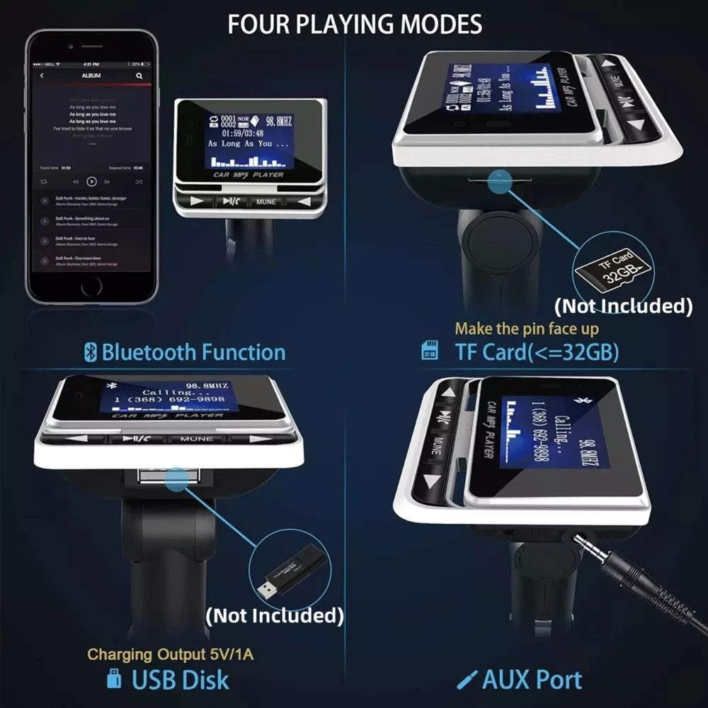 This Bluetooth FM transmitter is a game-changer for my car rides! The adjustable design fits perfectly, and the clear LCD display makes it easy to see calls and music info. The sound quality is impressive, with no static or echo during calls. Bluetooth pairing is quick, and the FM transmission is strong. Charges my phone fast too—super convenient for long drives. Highly recommend for upgrading your car’s audio!