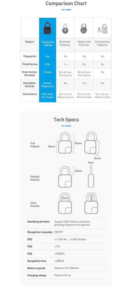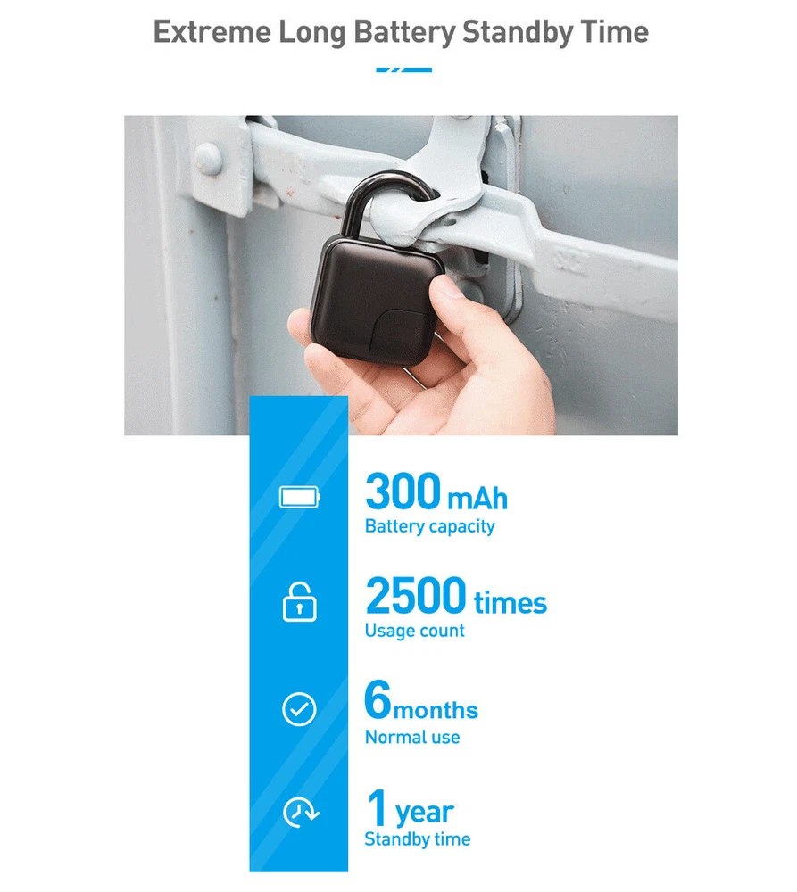 Product Description If you have any questions, please contact customer service first, do not open disputes easily, thank you! Specification: Bluetooth unlock app unlock Fingerprint unlocking biometrics Lithium battery capacity: 150mAh Storage capacity: 10 groups fingerprints FAR:<0.002% Working temperature: - 20 ℃ ~ + 70 ℃ Padlock: 3.7V 300mAh Charging voltage: 5V 1A APP: Tuya ldentifying direction: Support 360 arbitrary direction Pressing fingerprint recognition:Recognition resolution 508 DPI Lock body material: ADC12 zinc alloy Fingerprint setting short press to unlock, long press 5S to set Fingerprint, long press 10s to delete fingerprint Package Including: 1X Tuya Padlock 1X Charge Cable 1X Manual Payment Shipping Contact Us We accept paypal payments and all payments authorized by eBay. 1.We ship to your eBay or Paypal address. Please make sure your eBay and Paypal address is correct before you pay. 2.Items will be shipped within 1-2 business day when we received payment. 3.Delivery time depends on destination and other factors We strive for 100% customer satisfaction! Postive Feedback is very important to us. If you have any questions, please feel free to contact us via "Ask seller a question" , we will reply your email within 24 Working hours. Payment We accept paypal payments and all payments authorized by eBay. Shipping 1.We ship to your eBay or Paypal address. Please make sure your eBay and Paypal address is correct before you pay. 2.Items will be shipped within 1-2 business day when we received payment. 3.Delivery time depends on destination and other factors Contact Us We strive for 100% customer satisfaction! Postive Feedback is very important to us. If you have any questions, please feel free to contact us via "Ask seller a question" , we will reply your email within 24 Working hours. powered by