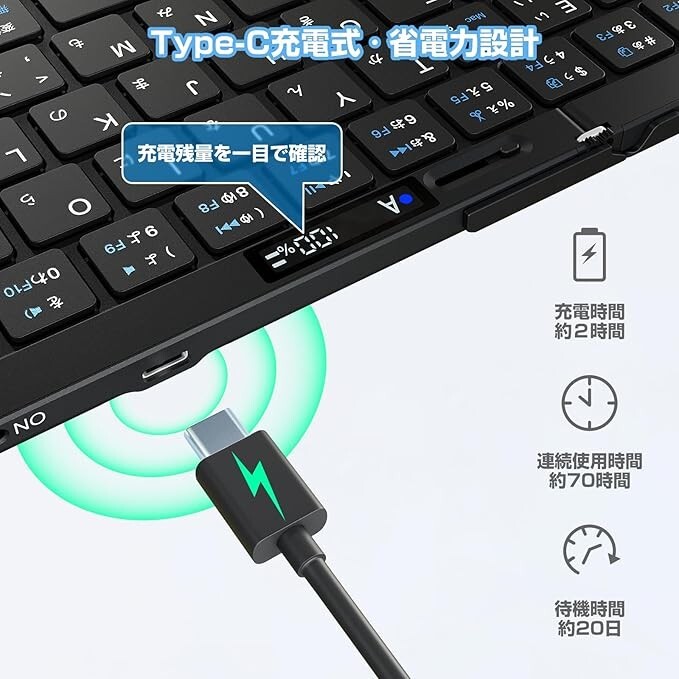 Ewin Keyboard Bluetooth Foldable Wireless Japanese Layout 3 Device Switching New Free Expedited Can switch between 3 devices, compatible with iPad/iPhone, iOS/Windows/Android/Mac/Google, etc., with touchpad, LED battery level indicator, full keyboard, wireless, slim, portable, compact, aluminum alloy, JIS layout, USB-C rechargeable, case included Supported devices: PC, tablet, iOS/Windows/Android/Mac/Google, laptop, smartphone Connection technology: Bluetooth [Industry first! Integrated design] When using the keyboard, simply slide the latch to quickly integrate and securely fix it. Even if you place it in an unstable place, you can operate it without any problems. The full-size key arrangement provides the same operation feeling as a desktop keyboard. 🏆 [LED battery display] The keyboard has an LED indicator, so you can check the connection status and battery level at a glance, and you won't miss the timing of charging. 🏆 [Supports 4 systems & switching between 3 Bluetooth devices] The key arrangement can be switched between Windows / Android / macOS arrangement and iOS arrangement with a button. You can enter the keys as printed on the keyboard on any OS, so you can use it without stress. Supports multi-pairing that allows you to easily switch between 3 Bluetooth-connected devices, greatly improving work efficiency. Even beginners can use it with confidence. 🏆 [Made of high-quality aluminum] The main body of the keyboard is made of durable aluminum material, combining a luxurious design with long-lasting quality. The stylish and luxurious appearance makes a good impression in work and private scenes. 🏆【Type-C rechargeable】Uses low power consumption Bluetooth 5.1, allowing for approximately 70 hours of continuous use. The standby time is approximately 90 days. You can use it with confidence even when you are out and about. 🏆【Energy-saving design】Automatically enters sleep mode when not in use to save battery. 🏆【Multifunctional protective case】Comes with a multifunctional case that not only protects the keyboard but also functions as a stand. 🏆【Comfortable typing】The key layout and feel provide comfortable typing, and the Bluetooth connection is stable, allowing you to work smoothly without delay. 🏆【Quiet design】The quiet design of the keyboard allows you to type comfortably without worrying about your surroundings. It is especially ideal for use in quiet environments.
