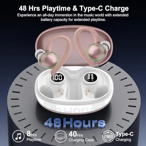 Return Policy Fast Delivery Trusted Seller Bluetooth Headphones Sport, Headphones Wireless Bluetooth 5.4 with 4 Mic, In Ear Headphones Bluetooth ENC Noise Cancelling, HiFi Stereo Earbuds with LED Display, 48 Hours Playtime, IP7 Waterproof, Rose Gold Product Product Description Seamless connection: These bluetooth headphones use the advanced Bluetooth 5.4 technology, which provides double the transmission speed and ensures a more stable connection. Enjoy instant and effortless pairing for a worry-free music experience. Superb Sound: With a 14.2mm dynamic unit and polymer diaphragm, you'll experience rich instrument sounds, crystal clear vocals, powerful bass, and a delicate, balanced sound that gives you a completely immersive listening experience. Clear Calls: C6 noise-cancelling noise-cancelling headphones have 4 ENC microphones that effectively filter out more than 98% of outside noise while playing your voice clearly. So you can experience high-quality call anytime, anywhere. Uninterrupted Experience: The wireless headphones can play music for more than 8 hours on a single charge, and the charging case can extend the battery life to 48 hours. Fast charging via USB-C only takes 1.5 hours to fully charge. Sports Earhook Design: Equipped with 3 pairs of silicone ear tips of different size, the wireless earbuds are ergonomically designed, very stable and lightweight. The soft earhook design (with elasticity) ensures that the headphones remain comfortable while running or performing strenuous exercises. Durable and Waterproof: Thanks to the advanced IP7 level nano-coating technology, these headphones bluetooth can effectively resist sweat and rain, providing strong protection during outdoor activities. Dual LED digital display: The LED display clearly shows the battery level of your sports headphones and charging housing. This helps you monitor remaining battery life in real time to ensure you can charge on time and avoid unpleasant power outages. Smart Touch Control: Thanks to the smart touch control sensor, these wireless headphones can be fully controlled even when you are not using your smartphone. You can adjust volume, change tracks, answer or end calls, take advantage of voice assistant activation features, and more for a more relaxed and free life. Shipping Returns Payment Shipping Shipping is FREE to all addresses. All our stock is shipped from warehouses in Germany. All orders are shipped within 24-72 hours of payment. Check our feedback to see the great feedback on the FAST shipping we offer. Returns Seller does not accept returns. Payment We currently accept payments only through eBay administrative statements. Once payment is received, we will ship your shipment within 1-3 business days. Please see the 'Shipping' tab for more information on shipping speed to your destination.