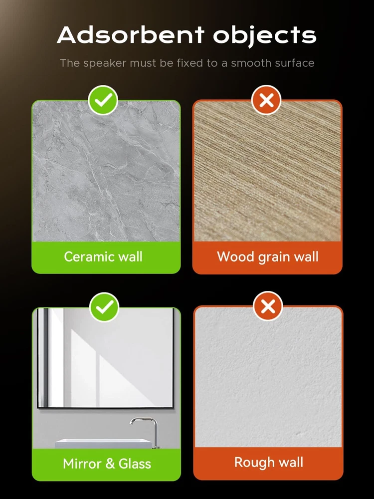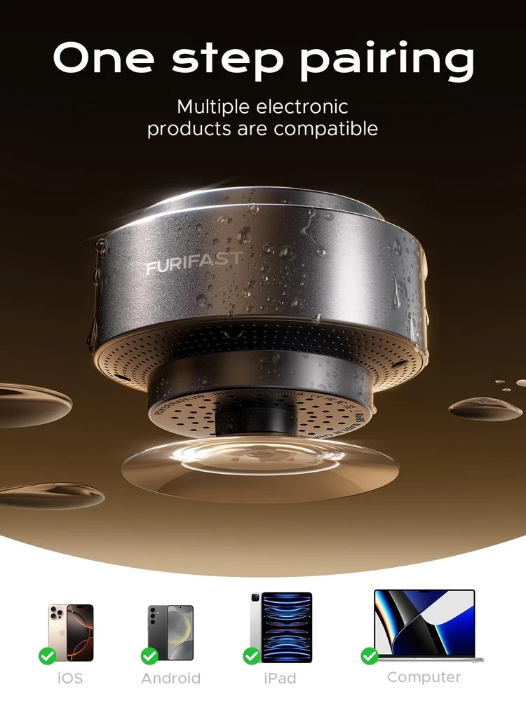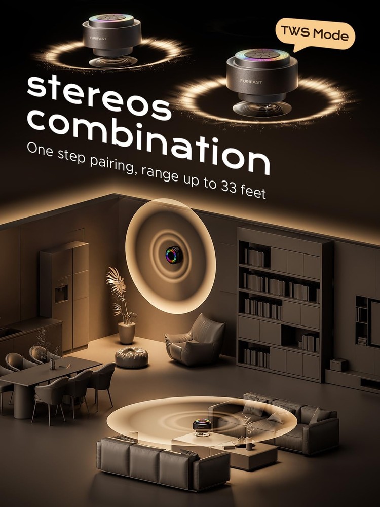 【Certified IP67 100% Waterproof】this Mini Portable shower speaker resists to water, rain and splash, even can float on your bathtub or pool, IP67 waterproof bluetooth speaker could be fully immersed up to 1 meter/ for about 30 minutes underwater, perfect for bathroom shower, pool, camping, beach picnics, boating etc. ♬【Reliable Stability with XL Suction Cup】❤️❤️Warm Tips:①It is recommended to attach it to a smooth surface such as a Mirror,Glass,etc.❤️❤️②Before use, plz wipe the suction cup of the speaker and the adsorbed surface clean to ensure that the adsorption is firm.❤️❤️ Our bath tub waterproof bluetooth speaker features an XL - sized suction cup that is engineered to be your ultimate solution for secure placement. This extra - large suction cup generates an incredibly strong bond, firmly affixing the speaker to any smooth bathroom surface. Its oversized design means a significantly larger contact area compared to regular suction cups, resulting in a much more robust adhesion. ♬【7 - Color RGB Light Dancing Show】Upgrade your bathroom with our Bluetooth speaker's dazzling 7 - color LED lights that dance to your music's rhythm. Whether playing a bath - time lullaby or a morning pop anthem, the dynamic light and rich audio transform your bathroom into a relaxing, entertaining oasis. ♬【IP67 Certified Total Protection】Designed for wet environments, this Bluetooth speaker offers reliable waterproof performance. It's submersible up to 1 meter for 30 minutes and completely dustproof. The robust sealed design protects against steam, soap splashes, and accidental drops. Ideal for showers, baths, beach parties, and camping trips. Its buoyant design allows it to float and deliver 360° sound. Keep the music going without worrying about moisture interruptions. ♬【Hi-Fi Sound & Tri-Balance Harmony】Engineered for audiophiles, this portable shower speaker boasts a full-range driver that masterfully blends crisp highs, rich mids, and punchy bass into one immersive soundscape. With 5W HD-tuned acoustics and triple-layer diaphragm technology, it delivers studio-grade clarity whether you’re belting shower solos or soaking in a bubble bath. The 360° surround chamber amplifies every note without distortion – from whisper-soft jazz to max-volume rock anthems. ♬【Bluetooth 5.3 and Wide Compatibility】The shower speaker features advanced Bluetooth 5.3 technology, which boosts connection speed by 50%, processing performance by 30%, and stability by 80% compared to Bluetooth 5.0, providing a smoother music playback experience than ever before. The waterproof Bluetooth speaker is compatible with smartphones running iOS 9.0/Android 5.0 or later, as well as all Bluetooth devices with Bluetooth 4.0 or higher, including phones, tablets, PCs, laptops, and more. ♬【Double the Sound, Double the Joy with TWS Mode】Our Bluetooth bathroom speaker supports TWS mode, enabling you to pair two speakers seamlessly. This feature not only doubles the volume but also creates a more immersive stereo soundscape. Whether you're taking a luxurious bath, having an energetic shower sing - along, or simply relaxing in the bathroom after a tiring day, the rich and full - range audio from the TWS - paired speakers will transport you to a private concert venue. Enjoy clear highs, deep lows, and a surround - sound - like experience that transforms your ordinary bathroom moments into extraordinary auditory adventures. ♬【Up to 18 Hrs Battery Life, No More Scrambling for Charging】Built high capacity 1200mAh battery inside, waterproof Bluetooth speaker can keep playing, get over 18 hours of continuous tunes, or around 300 songs from a single charging, It's small and compact, Equipped with top Bluetooth 5.3 Chip, easy to use, certified waterproof and built to last. ♬【Durable Material & Craftsmanship】Our Bluetooth bathroom speaker is made of high - quality ABS material, ensuring toughness and resistance to drops from up to 1 meter. It also features exquisite metal paint finish craftsmanship, giving it a sleek, high - end look and feel. This not only enhances its appearance but also provides extra durability against scratches and wear, making it ideal for the humid and busy bathroom environment. ♬【12-month Warranty】offers 12-month warranty, if you have any problem about the product, please feel free to contact us.Team provides 24*7 day customer service to solve any problems for our valued customers.