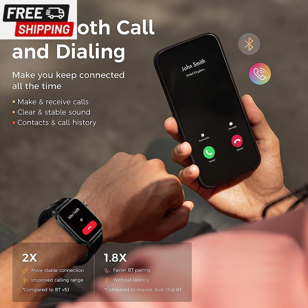 This watch is a game-changer! Crystal clear calls, super fast shipping, and the health tracking is spot-on. Love wearing it daily and the battery lasts forever. Highly recommend!