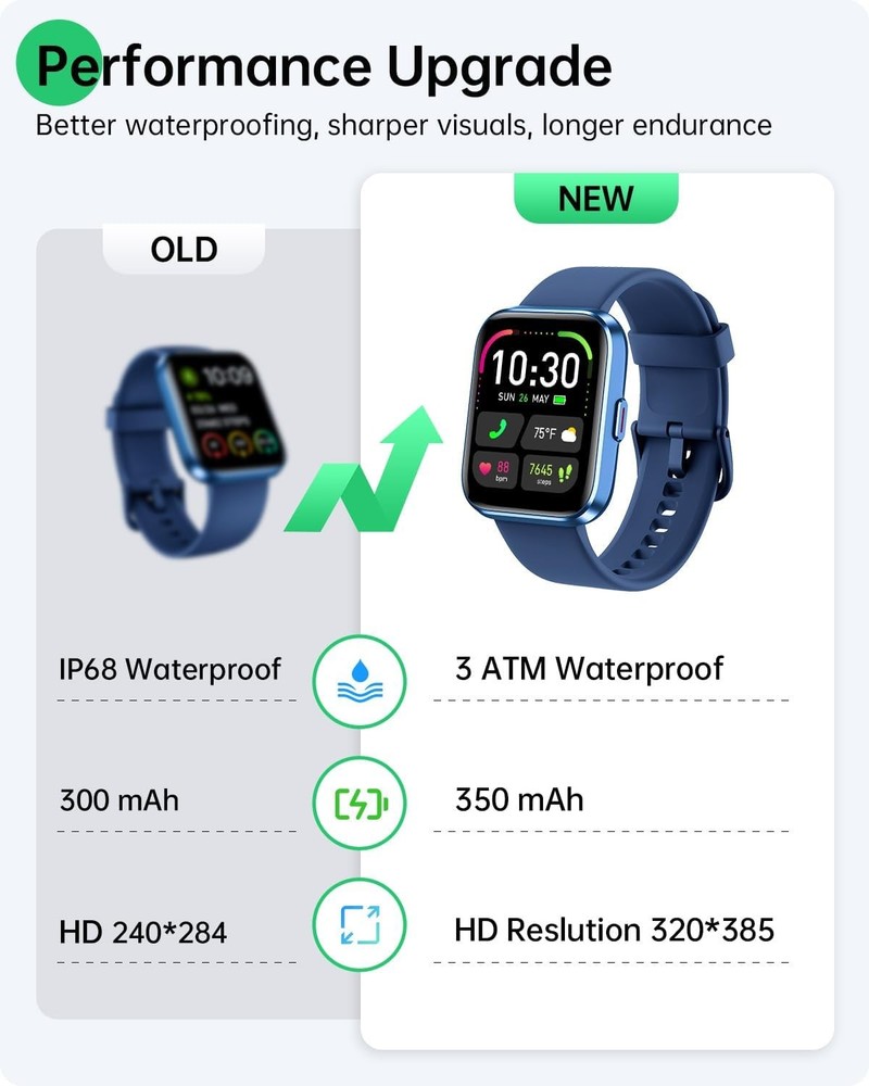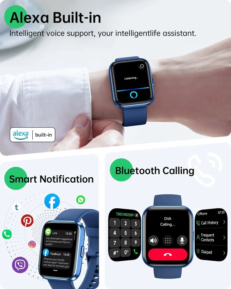 【Smart Voice Assistant & Bluetooth Calls & Notification Alerts】This Smart Watches for Women Support Alexa/Google Assistant,Use it for quick weather queries, music, and reminders. Directly connect via Bluetooth to your phone for hands-free calling,no need to touch your phone while driving or working out. Get real-time alerts for texts, WhatsApp, and calls 【24/7 Health Guardian】Smart Watches for Men Support 24/7 heart rate,blood pressure monitoring, sleep analysis(light/deep/REM), and all-day activity tracking.Real-time monitoring of heart rate and personalized sleep improvement tips. Know your body, anytime, anywhere 【3ATM Waterproof & 120+ Sports Modes】This Fitness Tracker for Women including Swim, surf, hike, yoga, pickleball, etc.Automatically recognizes movements and records data(Step、Distance、Calories、Heart Rate),50 meters waterproof: swimming and surfing, outdoor in rainy days, hiking, heavy sweating, everything is possible 【1.83" HD Touchscreen】Fitness Watches for Men Featuring a vibrant 1.83-inch HD full-color display (320x386 resolution), this fitness tracker delivers crisp visuals indoors or outdoors. Its high-sensitivity touchscreen reacts instantly to every swipe and tap. The personalized interactive interface captivates your eyes and seamlessly syncs with your lifestyle 【350mAh battery lasts 10 days】The Samrt Watch perfect for travel or daily grind. No need to charge frequently for daily use, and say goodbye to power anxiety on business trips. More features such as weather, stopwatch,timer, sedentary reminder, flashlight,camera control, find phone function, etc 【120+ Watch Faces & Customizable Bands】This Fitness Watches for Women has Personalised dial: classic numbers, minimalist lines, anime IP, 120+ styles change in a Second. 22 mm Quick release bands: silicone,nylon,leather,business, sports and leisure style in a second 【iOS/Android Compatible +5-Year Wa-rranty】Smart Watch for Android Phones Supports iOS 12+/Android 6+ systems, The Smart Watch for iphone compatible covering 95% of mainstream iphone and android phone models. 5-year warranty: after-sales team is ready to support any product issues or suggestions