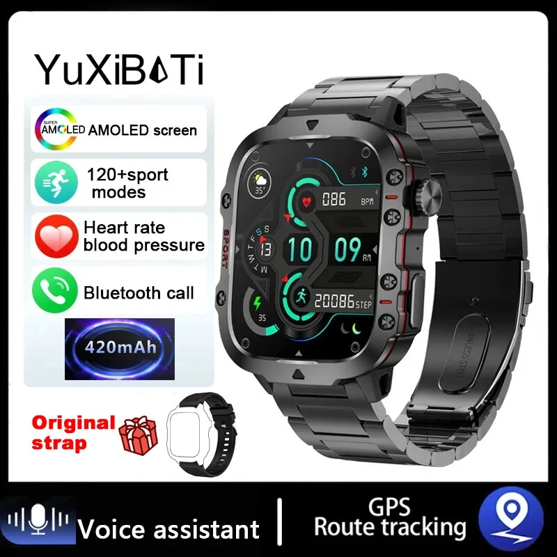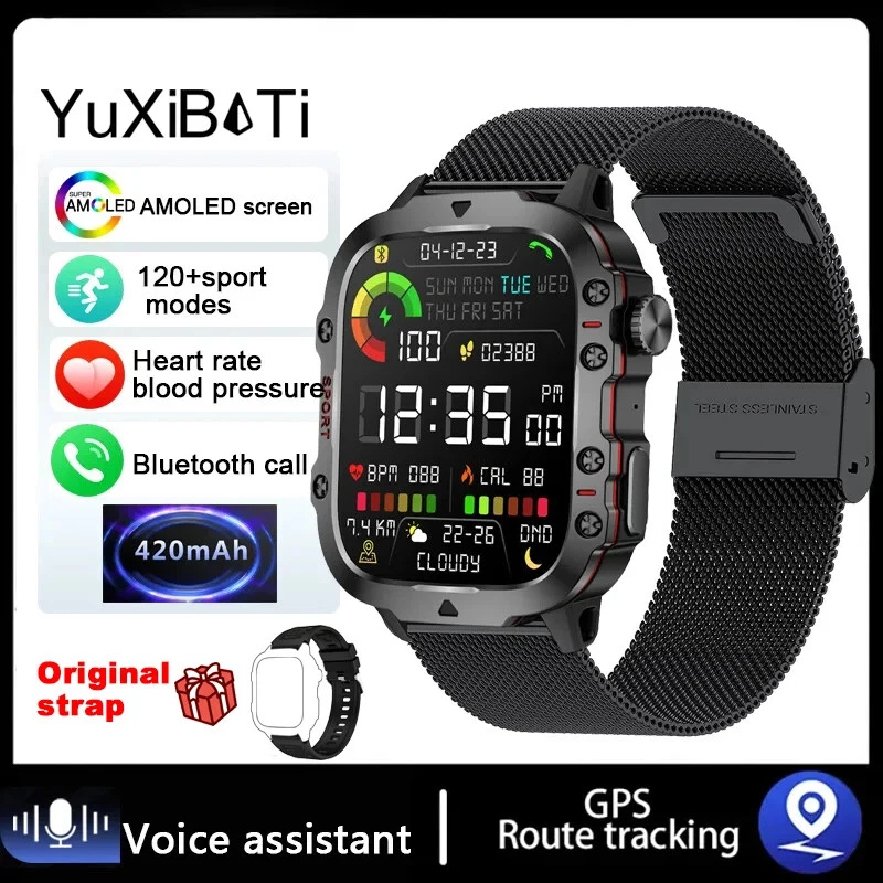 2024 New For Xiaomi Military Smart Watch Men IP68 5ATM Outdoor Sports Fitness Tracker Health Monitor 1.96" BT Call Smartwatch Parameter: Display: 1.96-inch HD Touch TP: full screen touch Buttons: 2 buttons with encoder Battery: 420mAh high voltage and large capacity Working time: 7-10 days Standby time: about 50 days Bluetooth: BLE5.2 APP:gloryFit System support: Android 4.4 or above, IOS 9.0 or above, Apple 5S or above Waterproof level: 3ATM Function: Continuous heart rate, one-click link, Bluetooth calling, true blood oxygen saturation, blood pressure monitoring, sleep monitoring, brightness adjustment, breathing training, voice assistant, raising hands and screen, information push, APP message reminder, more than 100 sports modes, weather Forecast, flashlight, clock display, alarm clock, SOS mini-game, calculator, female menstrual cycle, music playback, multi-function dial, custom wallpaper, sedentary reminder, do not disturb mode, search bracelet, remote camera, step counting, distance , calories, and more language: Watch languages: Chinese, English, Korean, Japanese, German, Spanish, French, Italian, Portuguese, Arabic, Polish, Russian, Indonesian, Turkish, Dutch, Czech, Traditional Chinese, Vietnamese APP languages: Ukrainian, Russian, Indonesian, Turkish, Hebrew, German, Italian, Czech, Slovak, Japanese, French, Polish, Thai, Simplified Chinese, Traditional Chinese, Romanian, English, Portuguese , Mongolian, Spanish, Vietnamese, Arabic, Korean Q:Why is the blood pressure value deviated from the sphygmomanometer? A:The deviation between the measurement value of the watch and the sphygmomanometer is determined by a variety of factors. The measurement site of the sphygmomanometer is in the radial artery, and the measurement site of the watch is the two main branches of the arteriole. Normaly, the aortic blood pressure measurement and the arteriole Blood pressure measurements will vary by three to forty; if you use a watch and a sphygmomanometer to measure at the same time, because the blood ?ows in the artery in the direction of the centrifuge, the sphygmomanometer measures the straps so that the lower part of your elbow is under pressure. Temporary blood cannot ?ow smoothly to the branch of the artery below, and the vascular tension is increased, which will make the upper and lower blood pressure measurement values more biased. Q:Why can't the watch receive the message push? A:Android phone settings1. Con?rm that the message push switch is enabled on the mobile client.2. The con?rmation message can be displayed normally in the mobile phone noti?cation bar. The watch message push is pushed by reading the mobile phone noti?cation bar message; if there is no message in the mobile phone noti?cation bar, the watch will not be able to receive the push(need to ?nd the noti?cation setting in the phone settings, open WeChat, QQ phone, SMS, noti?cation button of mobile client)3. Open the auxiliary function settings of the wristband client(see the auxiliary function in the settings on the phone, and open the auxiliary function settings of the wristband client) Apple phone settings:1. Con?rm that the message push switch is enabled on the mobile client.2. the con?rmation message can be displayed normally in the mobile phone noti?cation bar(need to ?nd the noti?cation settings in the phone settings, open WeChat, QQ phone, SMS, mobile phone client noti?cation switch) Q:Why does the pedometer not count steps when I have already started walking? A:To reduce errors, smart watch usually sets an initial value of 10, it will count steps when we walk more than 10 steps. The APP will show the real walking steps and start counting from step 10. Q:What application is used when connecting to a smart phone? A:The app is designed by the supplier. You can scan the QR code on the package or manual to download it when you get the item. Q:Why the device cannot boot or start up properly? A:Please charge your new device for at least 10 minutes or more before the first usage, this ensures normal device boot and optimal operation. For devices with removable batteries, ensure they are properly installed before charging. Q: Can not find device when pairing device? A:Please make sure the distance between phone and device less than 0.5m Please make sure the device is not under low battey.if there is still problem after 1.5hours charging,Please cantact us. Q:Can not connect the devicewith app? A:Some smart phone bluetooth service will be abnormal when reboot.Please reboot the smart phone for pairing device. Q:Why the android mobile disconnect? A:Android mobile phone system memory management will be forced to turn off the background app,you need to turn off the power saving mode or pull the app into the ayatem housekeeping green background inside,app will not be forced to close.app must be running in the background,bluetooth will not automatically disconnect. Q: Why couldn’t I connect the Bluetooth? A:1. Please download the app firstly 2. Search Bluetooth name on your APP and then connect it. 3. You can see request to connect on the phone, click “pair. If you had connected the Bluetooth before, please clear all your phone's Bluetooth devices. Q:Is the watch waterproof? A: Smart Watch is splash-proof and sweat-proof, so it is ok while you are doing sports . But you can’t swim with it. (please note: it does not support the brewing hot water, hot bath, and water vapor. Please avoid using and storing the device at the place of high temperature & high humidity.)
